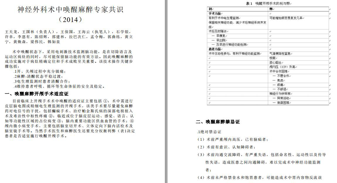 1-1 IJ20190732神经外科手术术中唤醒麻醉的现状与未来 王国林 田婧 谢克亮 于泳浩
