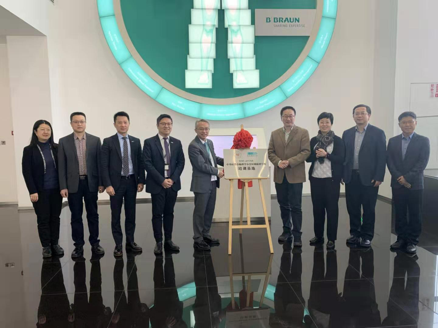 区域麻醉学组副组长王庚教授、副组长罗艳教授、学组秘书万里教授、学组委员兼工作秘书唐帅教授、学组委员安海燕教授、学组工作秘书公茂伟教授等众多学组代表,贝朗公司首席执行官兼董事总经理苏劲先生、医药事业部总经理陈祁先生、贝朗麻醉及重症治疗领域业务部高级销售市场总监刘杰先生出席了基地授牌仪式。