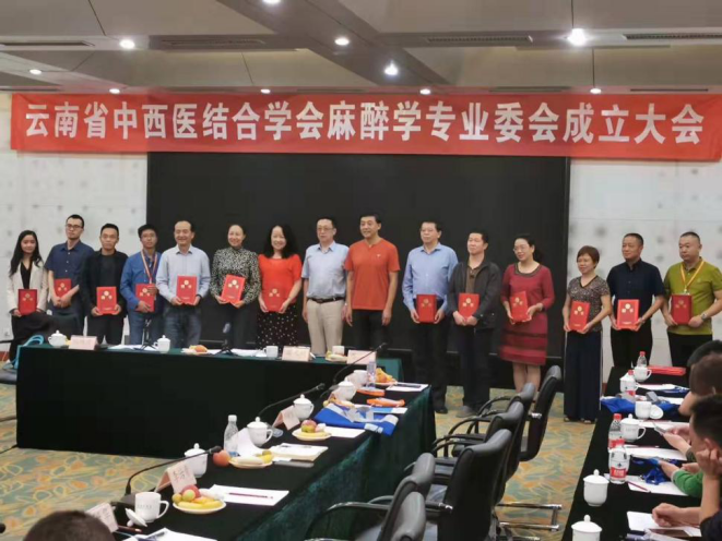 2019年8月31日至9月1日,在美丽的边陲云南省昆明市,云南省中西医结合学会麻醉学专业委员会成立大会暨麻醉学术论坛,隆重召开。此次会议,在云南省中西医结合学会的支持下,邀请了云南省中西医结合学会宁亚功副会长、中西医结合学会葛元靖秘书长、中国中西医结合学会麻醉学分会主任委员苏帆教授、副主任委员崔苏扬教授、马武华教授、解放军联勤保障部队第九二0医院麻伟青教授等国内多位著名专家莅临支持。宣布解放军联勤保障部队第九二0医院麻醉科麻伟青主任当选第一届主任委员,并宣读副主任委员及委员名单并发放聘任证书。葛秘书长及苏帆主任委员对麻醉专委会提出要求并给予厚望,祝愿麻醉专委会在中西医结合围术期应用中作出新的成绩。麻伟青主任委员表示有信心、有决心、有能力带领麻醉专委会成员不断创新进取,在开展科研学术交流、加快人才培养及加强临床管理能力等方面加快麻醉专委会的发展。