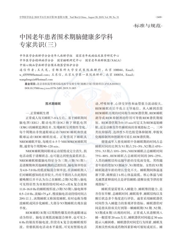 《中国老年患者围术期脑健康多学科专家共识》于2019年7月16日发表于中华医学杂志并连载3期。