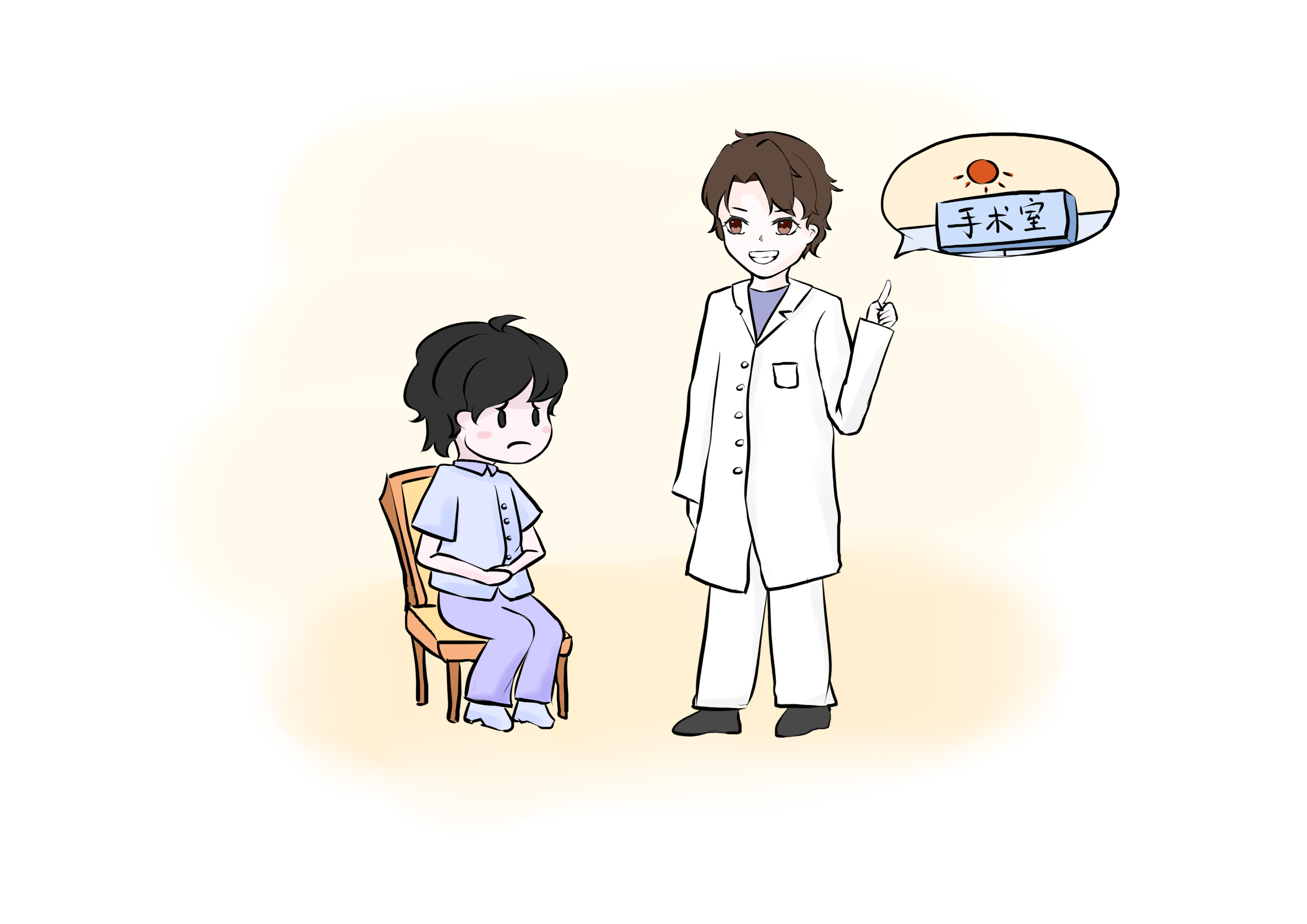 经过帅气医生哥哥的诊断,确认小昊为嵌顿疝,要接受手术治疗