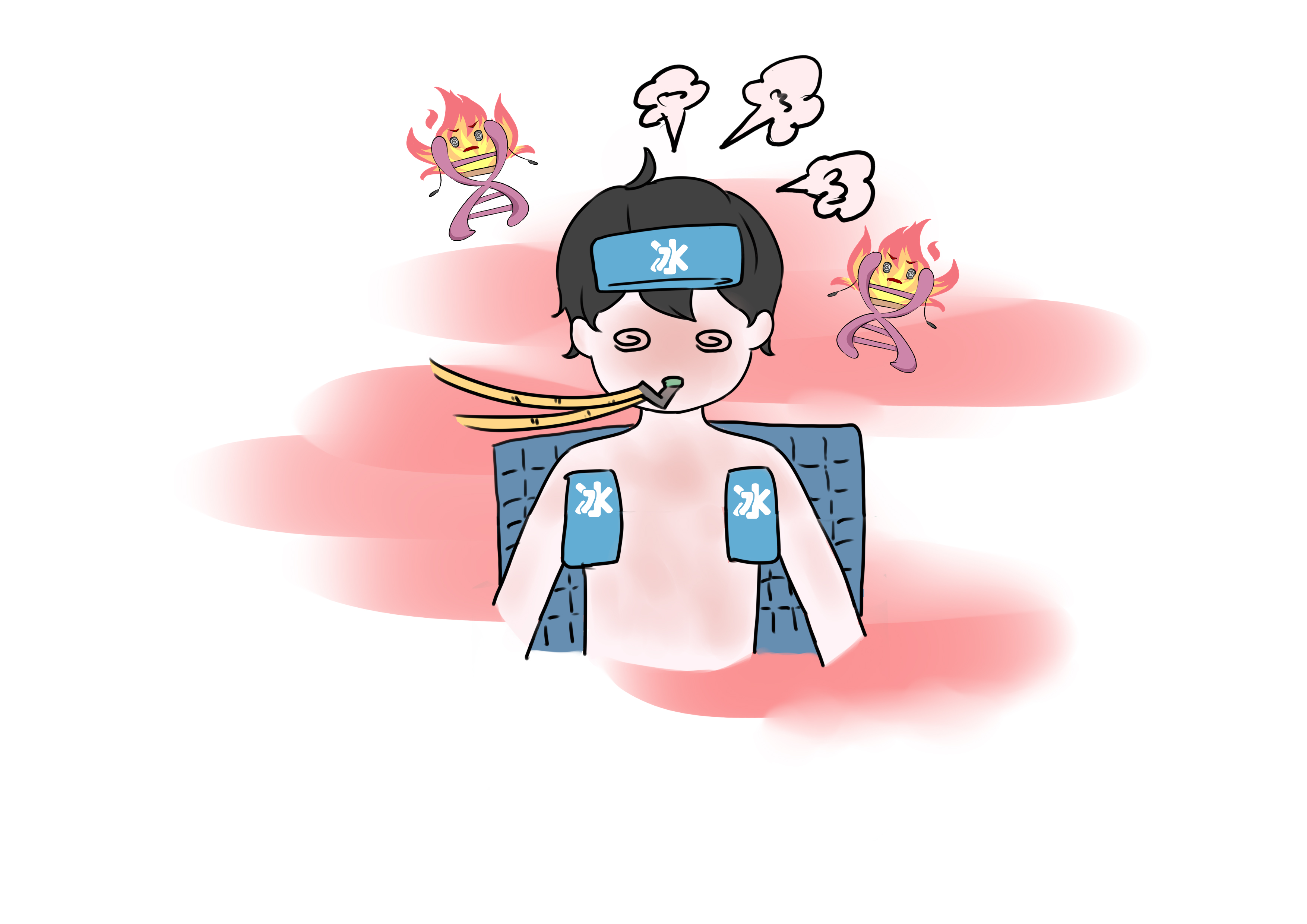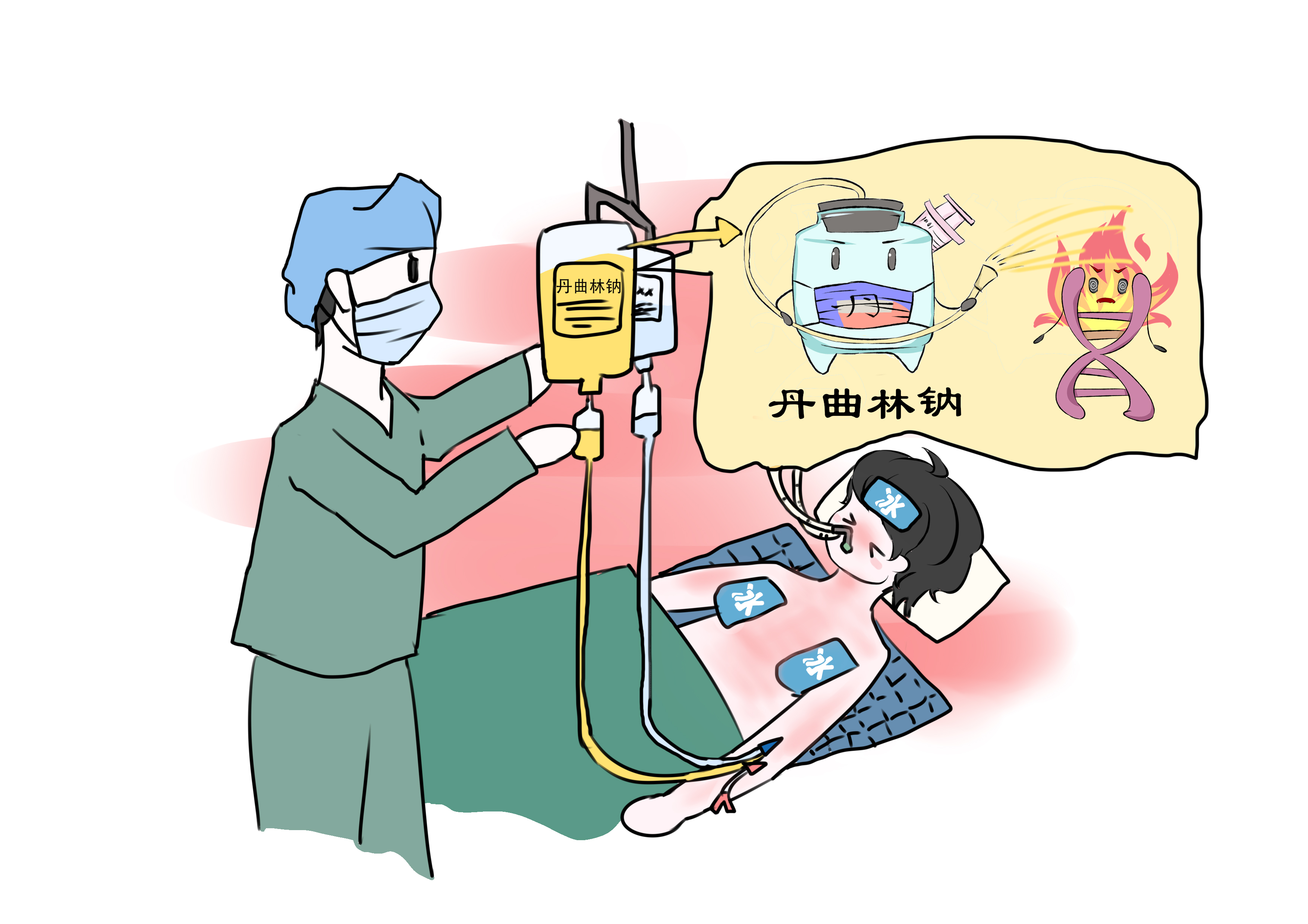 采取多途径物理降温:冰袋、冰盐水……