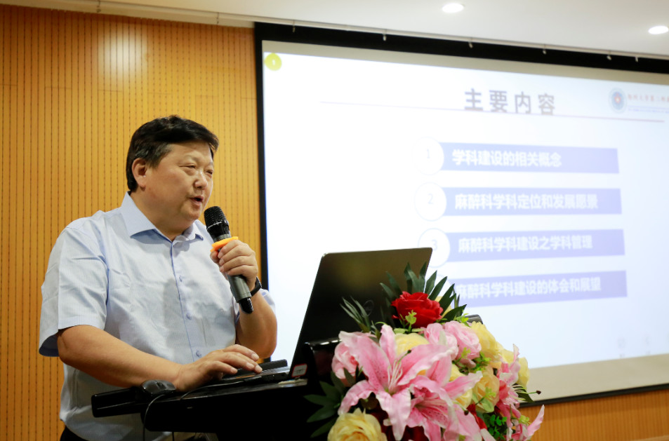研讨会上,河南省疼痛医师分会会长、河南省麻醉学分会副主委、郑州大学第二附属医院麻醉科主任及疼痛科名誉主任,博士研究生导师、享受国务院特殊津贴专家董铁立教授作“浅谈麻醉学科建设”的学术报告。他指出管理更是生产力,并详细介绍了他对于麻醉科三级管理的分组方法、绩效分配方案、激励政策、麻醉科主任的岗位职责和任务(科学分工、培养后备人才和协调各种关系)、麻醉学科的定位和发展愿景。董主任还解读了21号文件(关于印发加强和完善麻醉医疗服务意见的通知)精神,包括:麻醉费价格调整、麻醉门诊、麻醉护理单元和麻醉ICU等建设性的思路和经验。