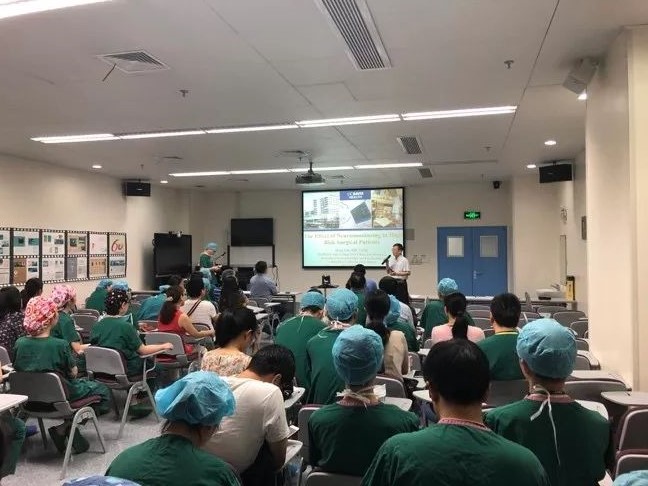 7:45分学术活动准时开始,罗爱林教授代表武汉医学会麻醉学分会和同济医院麻醉学教研室介绍了本次演讲的嘉宾刘虹教授,并对刘虹教授允许本次讲座面向武汉医学会麻醉学分会委员单位进行现场直播表示感谢。