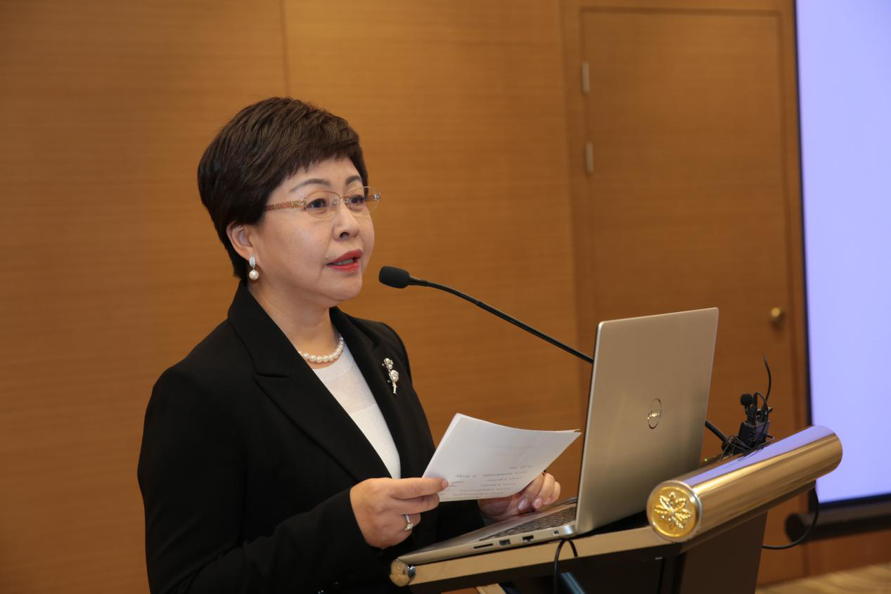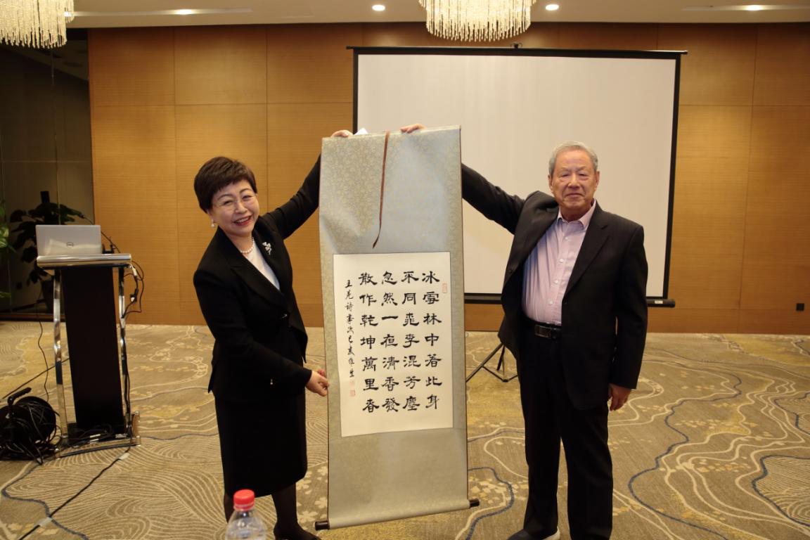 麻醉学科管理学院执行主席、吴阶平医学基金会国际交流部主任任阳女士致辞。首先,任阳女士对吴阶平医学基金会麻醉学科管理学院的主要发起人曾因明教授、邓小明教授、仙琚药业以及整个项目中具体的执行人员和古麻今醉的媒体支持表示感谢。另外,她谈到吴阶平医学基金会的定位是服务,为所有医务工作者在健康事业的发展做好服务,承担起社会公益的责任。最后,任阳女士借用王冕的诗句“忽然一夜清香发,散作乾坤万里春”,并将这首《白梅》的书法赠予曾老。最后,希望学员们通过在麻醉学科管理学院这个平台的学习,对以后的管理工作有所裨益,并为促进中国麻醉学科发展尽一份力。