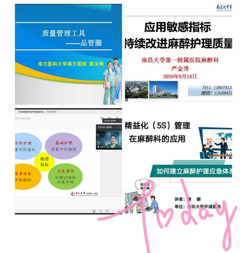 护理质量持续改进是永恒的的主题,南方医科大学南方医院姜玉梅老师的《质量改善活动常用的工具与方法》以及南昌大学第一附属医院麻醉科严金秀护长的《应用敏感指标持续改进麻醉护理质量》,让我们对品管圈有了进一步的认识和了解,为今后更好的开展麻醉护理质量工作打下坚实的基础。中山大学附属第一医院麻醉科陈旭素护士长,通过《麻醉护理质控体系的建立与实施》一课,阐述了麻醉护理质控体系的构建核心,需全员参与,落实到每项工作,每个环节。深圳大学平湖医院麻醉科唐娜护士长,从精细化管理、模块化运作等不同的角度为我们讲述了《5S管理法在麻醉科的应用》和《如何建立麻醉护理应急体系》,以独特的方式串起麻醉科的管理以及麻醉护理体系建立的知识点,让我们印象深刻。