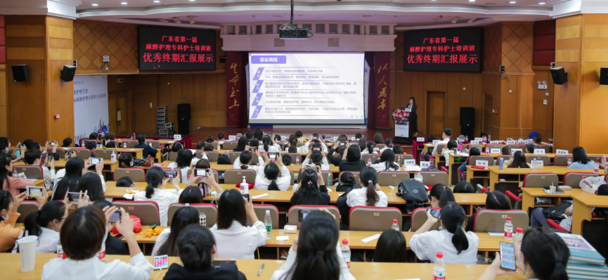 第一届麻醉护理专科护士进行了优秀毕业论文汇报分享。五位学员分别向大家分享了获得优秀毕业论文的护理个案、项目及论文。主持人罗小平、毛小燕护士长对汇报论文进行了提问与点评,最后由丁红护士长进行了总结。(详见本公众号《【祝贺】广东省第一届麻醉护理专科护士培训班顺利毕业》)