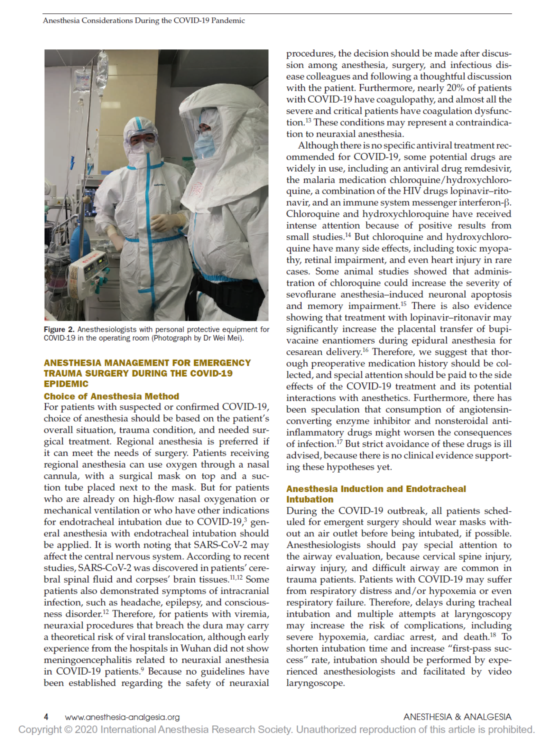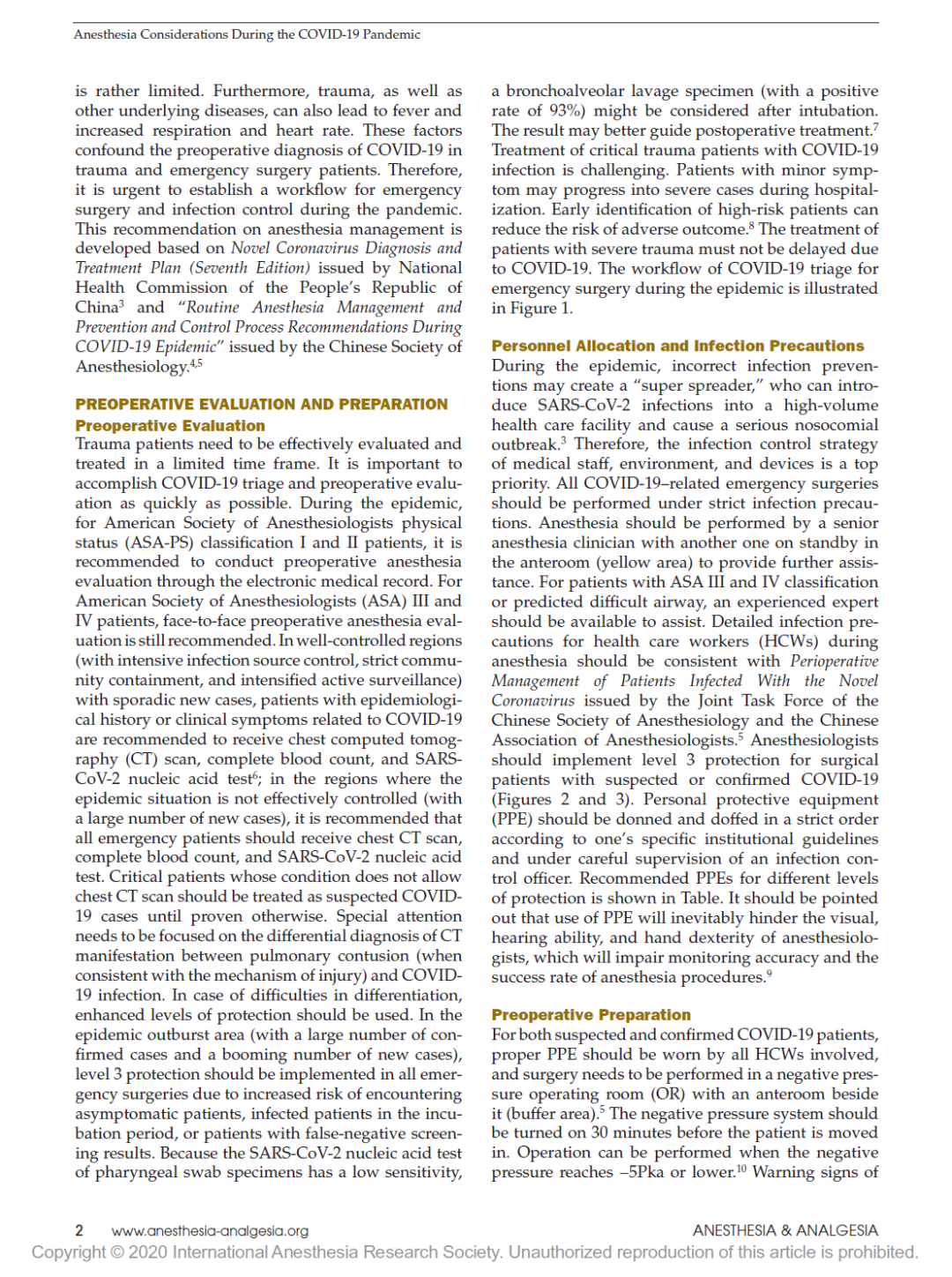 疫情期间创伤和急症患者麻醉及防护策略