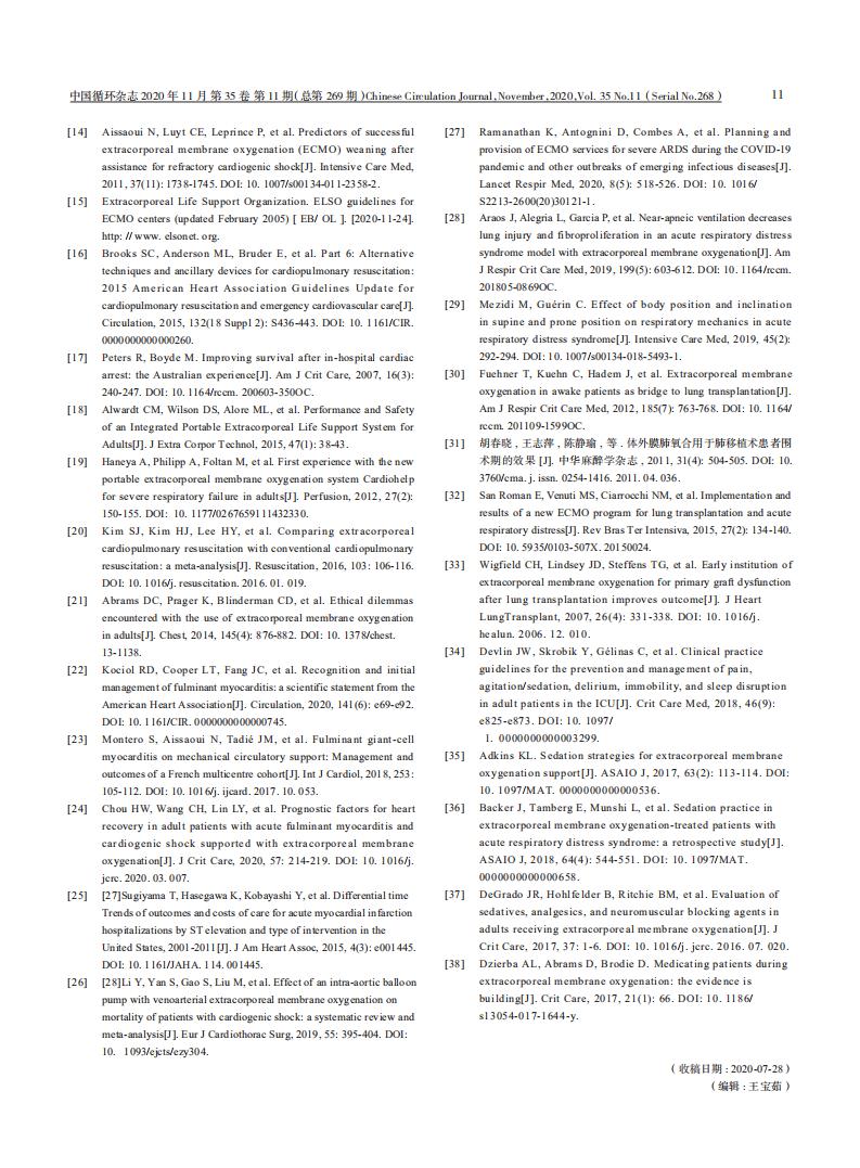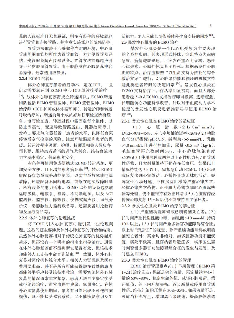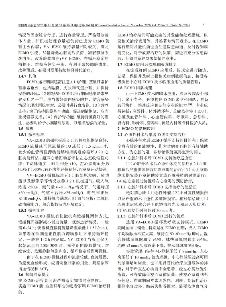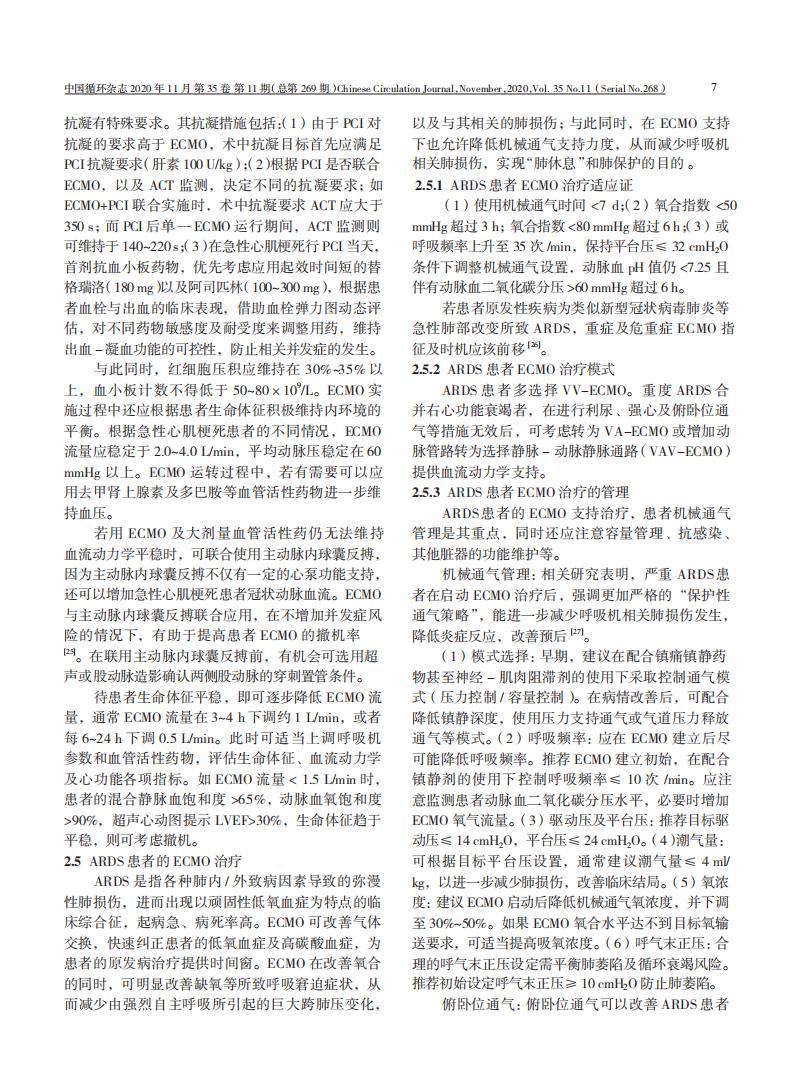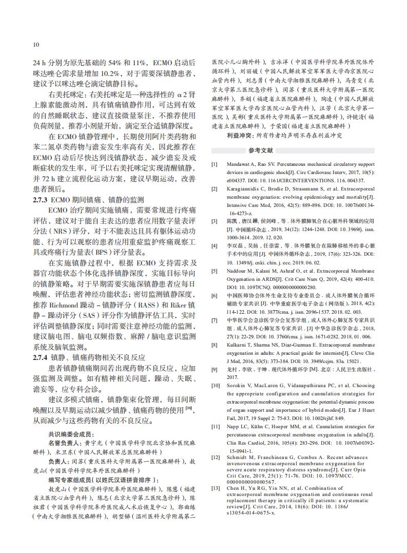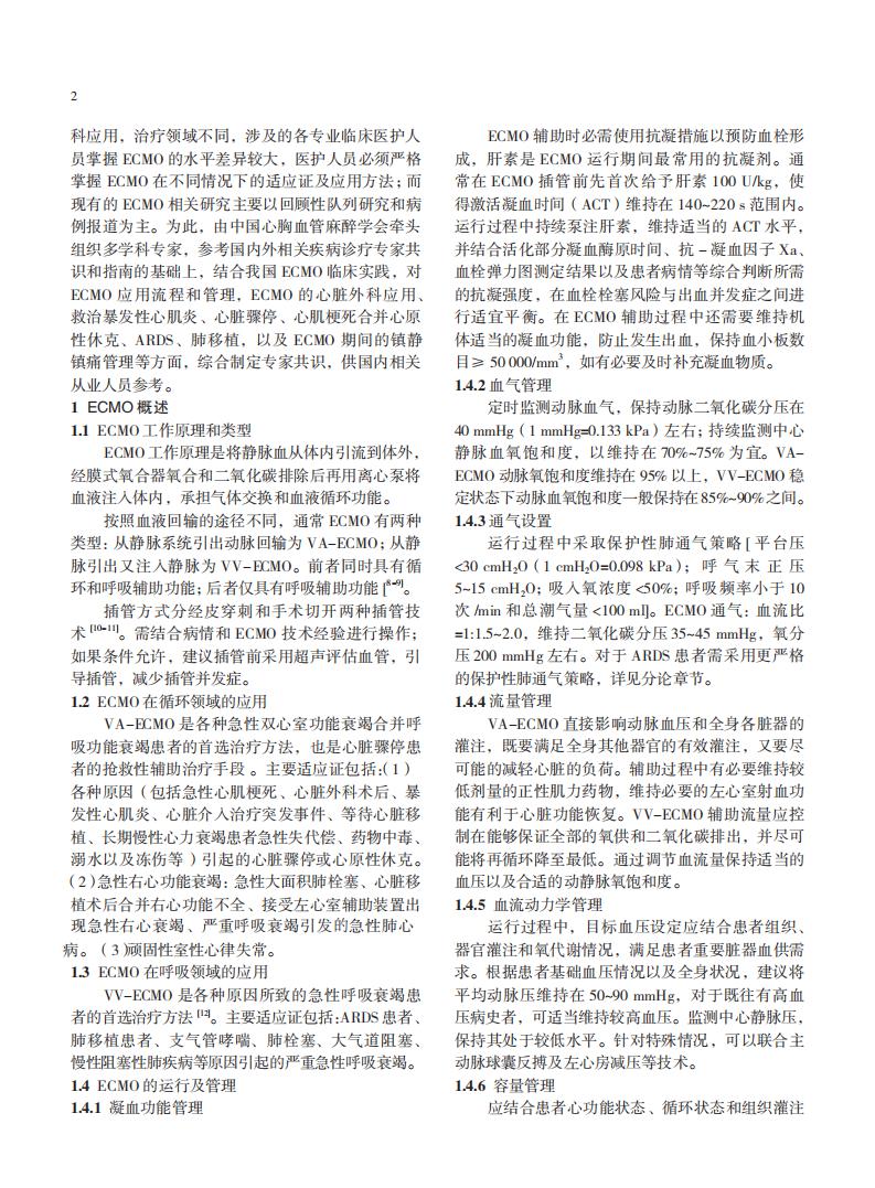 不同情况下成人体外膜肺氧合临床应用专家共识(2020 版)
