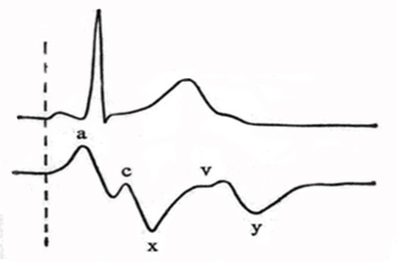 3. x波 在c波之后,随着右心室的继续收缩,右心房开始舒张,使右心房压快速下降所致。