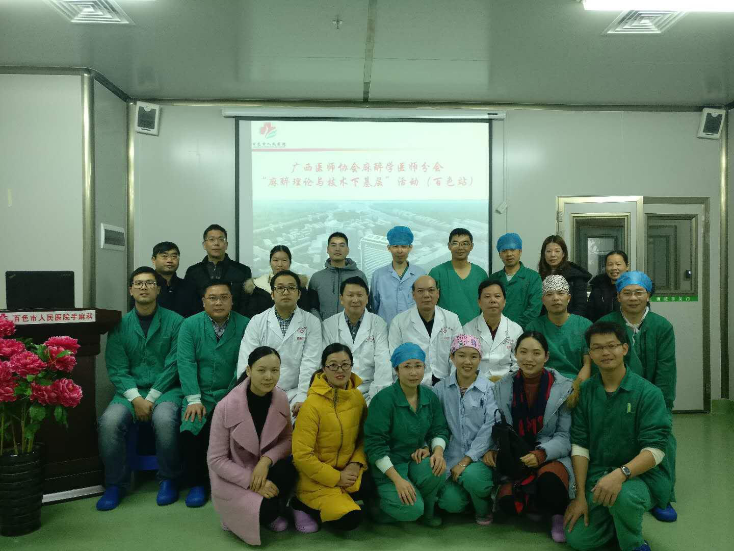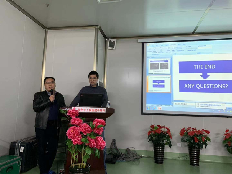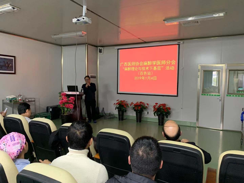 2019年1月4日,在广西壮族自治区百色市人民医院第二住院部四楼手术室和麻醉科教室,上演了一场“广西麻醉学分会骨科麻醉与区域麻醉学组下基层学术交流活动——百色站”的盛宴。广西医师协会麻醉学医师分会主任委员、广西医科大学第一附属医院麻醉科主任刘敬臣教授为本次活动的主要负责人,广西医学会麻醉学分会骨科麻醉与区域麻醉学组组长、广西医科大学第一附属医院麻醉科副主任林成新教授是本次活动的策划联系人,参加本次培训会议的是百色市各级医院麻醉科医师共计50人。本次下基层学术交流活动在广西壮族自治区内有多个轮转点,旨在推进可视化(超声)在临床麻醉中应用,提高临床麻醉中区域阻滞麻醉的质量,更高标准的完善广西壮族自治区麻醉管理。