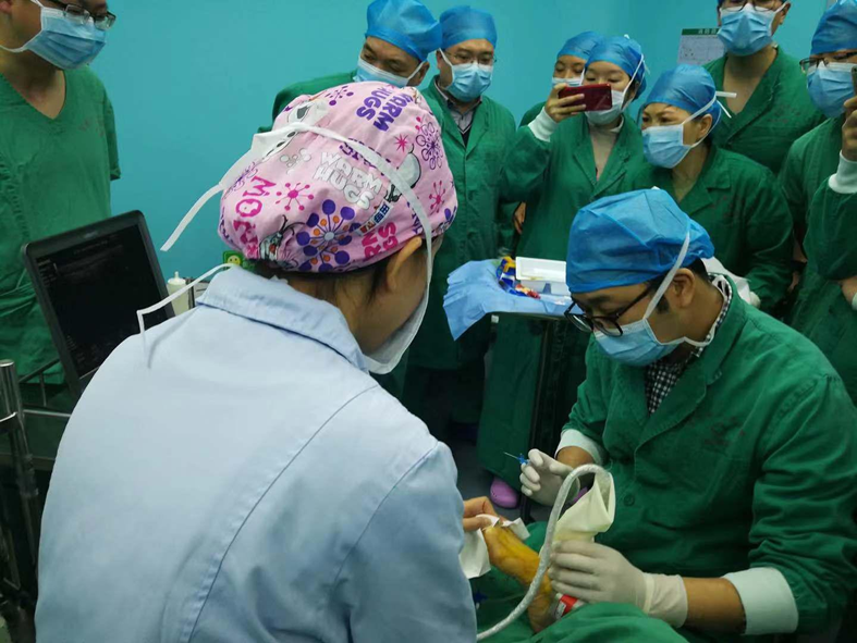 莅临本次活动的专家有:广西医科大学第一附属医院刘敬臣教授、林成新教授、舒礼佩副教授、毛仲炫副教授及戴伟忻讲师、解放军923医院钟军主任。正所谓“八仙过海,各显神通”,专家们在会上也是各显神通,别开生面地向大家讲解临床麻醉中需要特别注意的难点问题,主要围绕危重病人尤其是临床骨科麻醉中需要关注的问题进行现场指导,同时通过各种现场病例讲解可视化技术(超声引导)在临床麻醉中的应用,现场演示臂丛神经阻滞、动静脉血管穿刺置管等可视化技术的应用,促进可视化麻醉技术在危重病人尤其骨科病人临床麻醉中应用,提高基层临床麻醉质量。