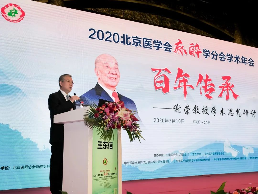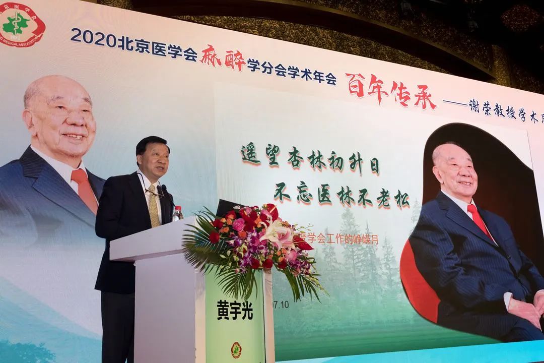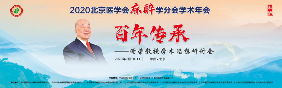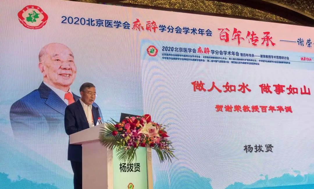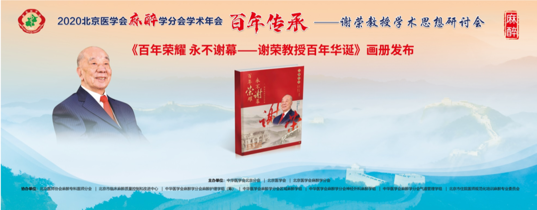2020年7 月10日,逢中国麻醉事业奠基人谢荣教授百岁诞辰之际,由北京医学会麻醉学分会和北京大学医学部麻醉学系联合举办的“谢荣教授学术思想研讨会”在北京召开。因疫情原因,北京民生金融中心,北京医学会麻醉学分会年会以线上直播+线下会场的模式进行,在开幕式前,谢荣教授学术思想研讨会严格控制了到场人数,部分改为录播。不大的会场里群贤毕至,少长咸集,虽无宾客如云之盛,数位发言嘉宾,或为麻醉界耆宿,或为学科带头人,从临床、教学、科研、学会工作等各个角度总结谢荣教授的贡献,畅述景仰之情,也称得上一场学术和人文的视听盛宴。