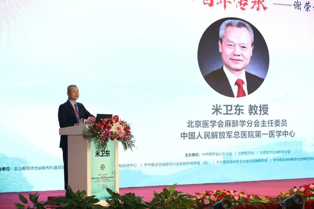 会议由北京大学第一医院麻醉科主任王东信教授主持,中华麻醉医师协会会长、中华医学会麻醉学分会副主委、北京医学会麻醉学分会主任委员米卫东教授致辞。