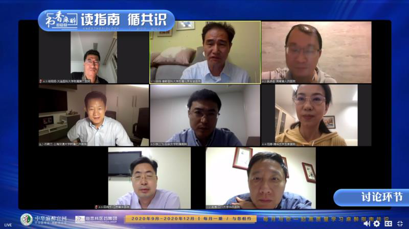 从9 月开始,中华医学会麻醉分会官网推出了“读指南/循共识”的指南及专家共识的解读系列活动,开启“书香麻醉·读书会”的精彩第二季,活动的目的是希望能帮助广大一线临床医师更好的理解和掌握麻醉领域近期发布的指南共识并将其更好的应用到临床实践中。“读指南/循共识”系列活动是通过网络视频会的形式由麻醉界的知名专家对麻醉领域相关指南共识进行深层次的解析,同时结合临床实践与基层麻醉医师进行全方位的讨论。
