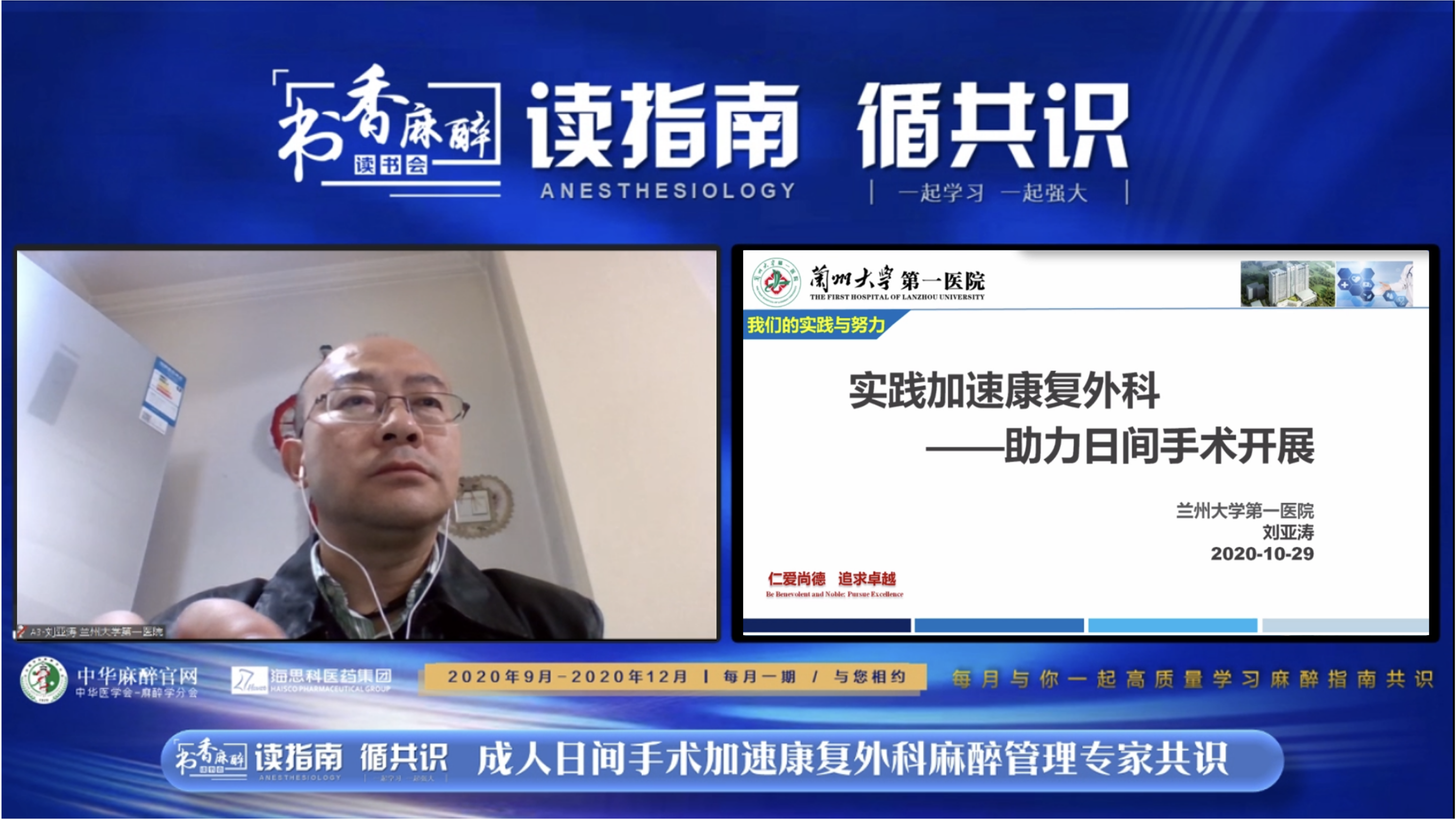 从 9 月开始,中华医学会麻醉分会官网推出了“读指南/循共识”的指南及专家共识的解读系列活动,开启“书香麻醉·读书会”的精彩第二季。活动的目的是希望能帮助广大一线临床医师更好的理解和掌握麻醉领域近期发布的指南共识并将其更好的应用到临床实践中。“读指南/循共识”系列活动是通过网络视频会的形式由麻醉界的知名专家对麻醉领域相关指南共识进行深层次的解析,同时结合临床实践与基层麻醉医师进行全方位的讨论。