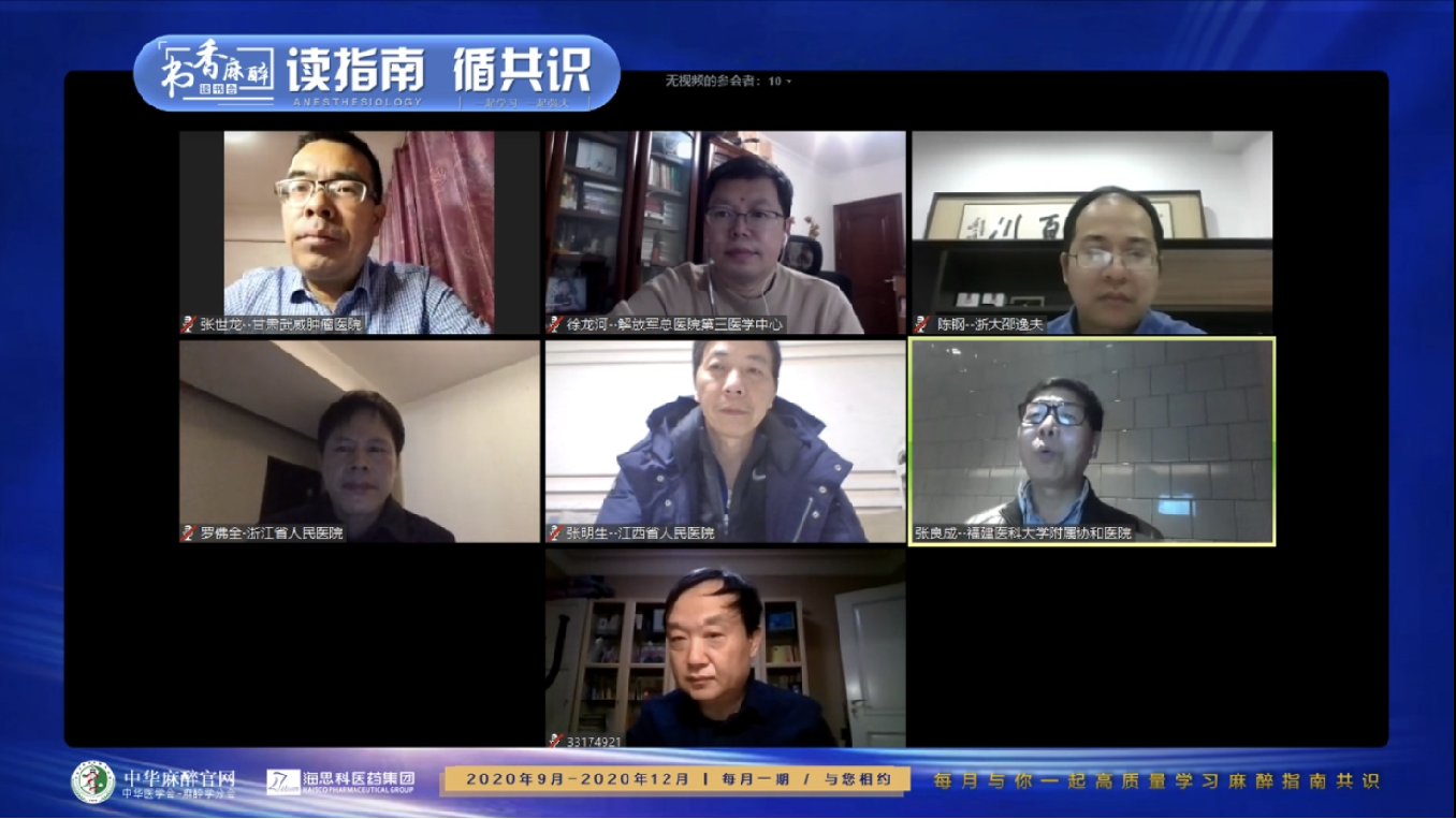 从 2021年1月开始,中华医学会麻醉分会官网推出了“读指南/循共识”的指南及专家共识的解读系列活动,开启“书香麻醉·读书会”的精彩第三季。活动的目的是希望能帮助广大一线临床医师更好的理解和掌握麻醉领域近期发布的指南共识并将其更好的应用到临床实践中。“读指南/循共识”系列活动是通过网络视频会的形式由麻醉界的知名专家对麻醉领域相关指南共识进行深层次的解析,同时结合临床实践与基层麻醉医师进行全方位的讨论。