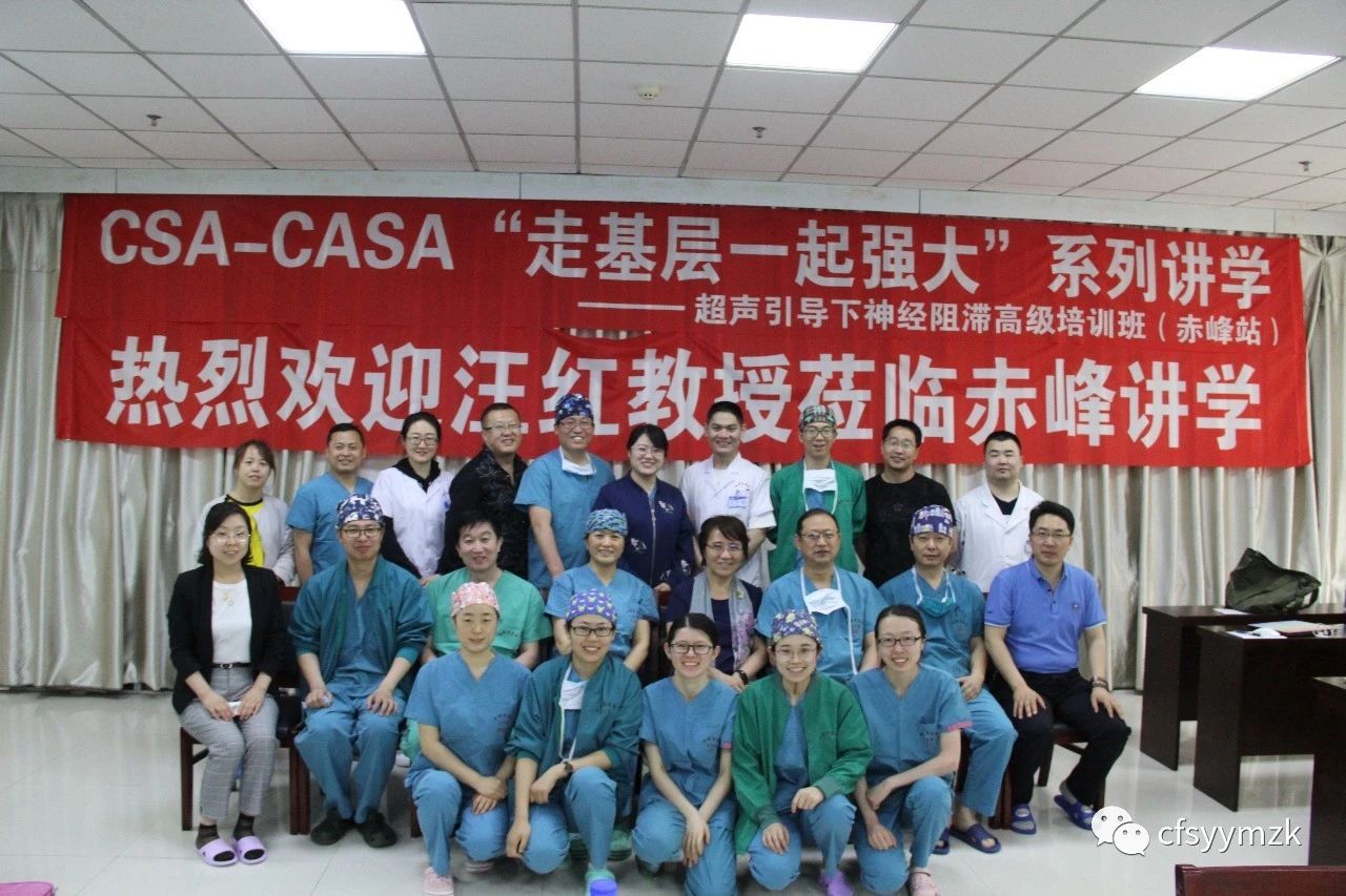 2019年5月15日,CSA-CASA走基层一起强大”系列讲学活动之一暨超声引导下神经阻滞高级培训班在赤峰市医院麻醉科成功举办,此次会议我们很荣幸邀请到了美国华人麻醉医学会(CASA)会长汪红教授莅临我科传道授业,同时,赤峰市医院副院长张析哲,赤峰市医院麻醉科周琪主任,梁晓东副主任,宋健楠副主任,赤峰市各基层医院的科室主任及骨干共20余人参加了此次高级培训。