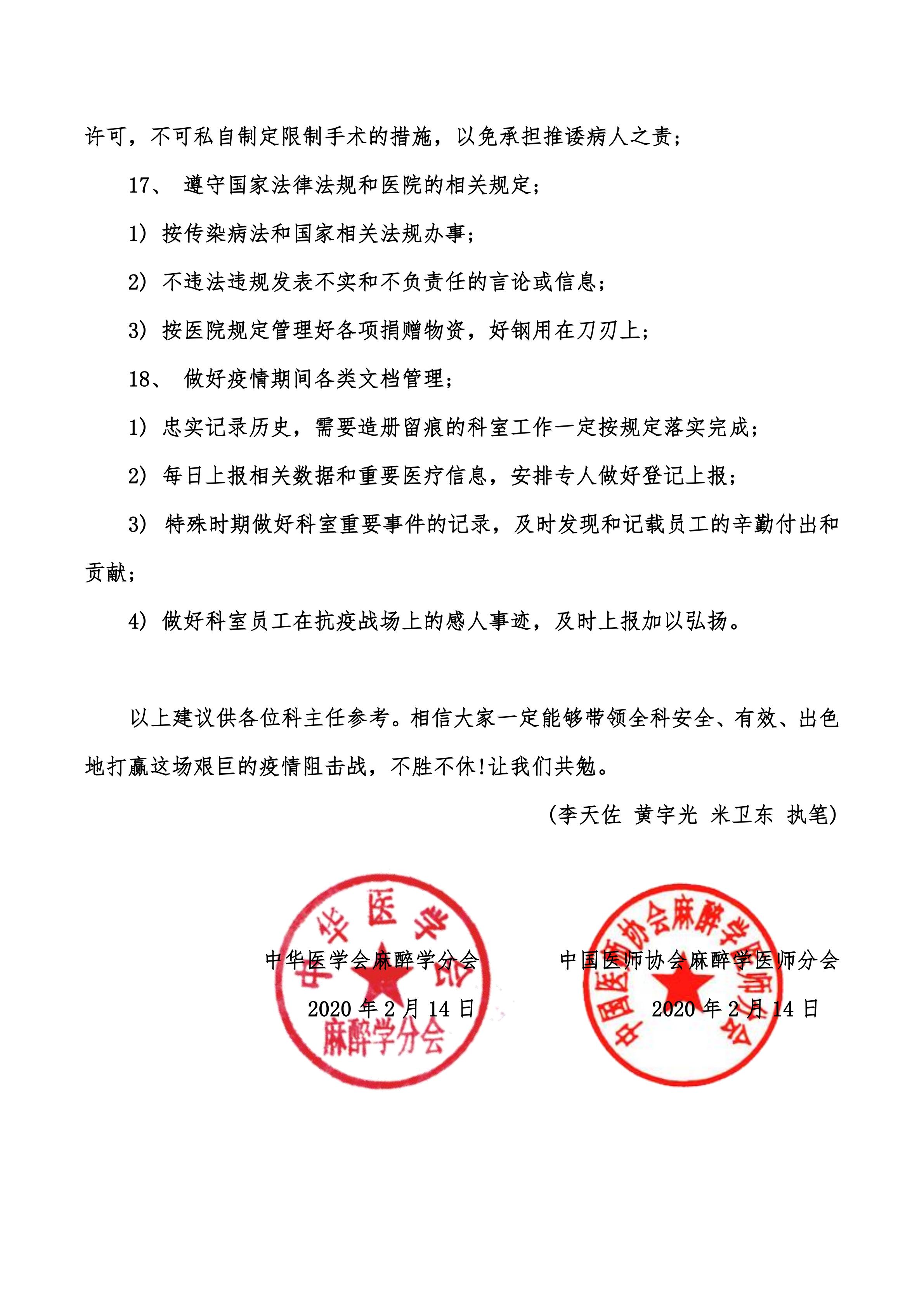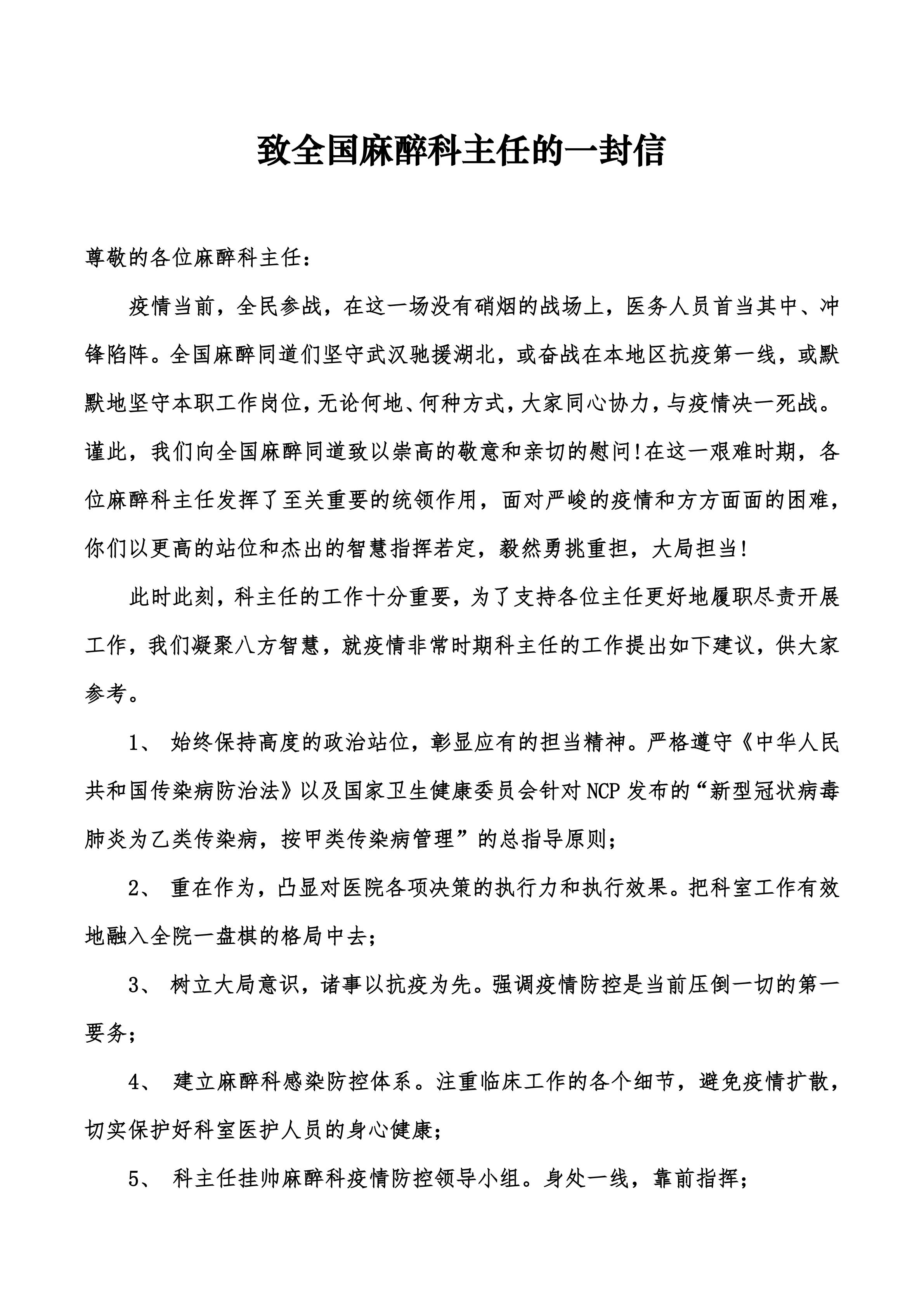 【抗击疫情】致全国麻醉科主任的一封信