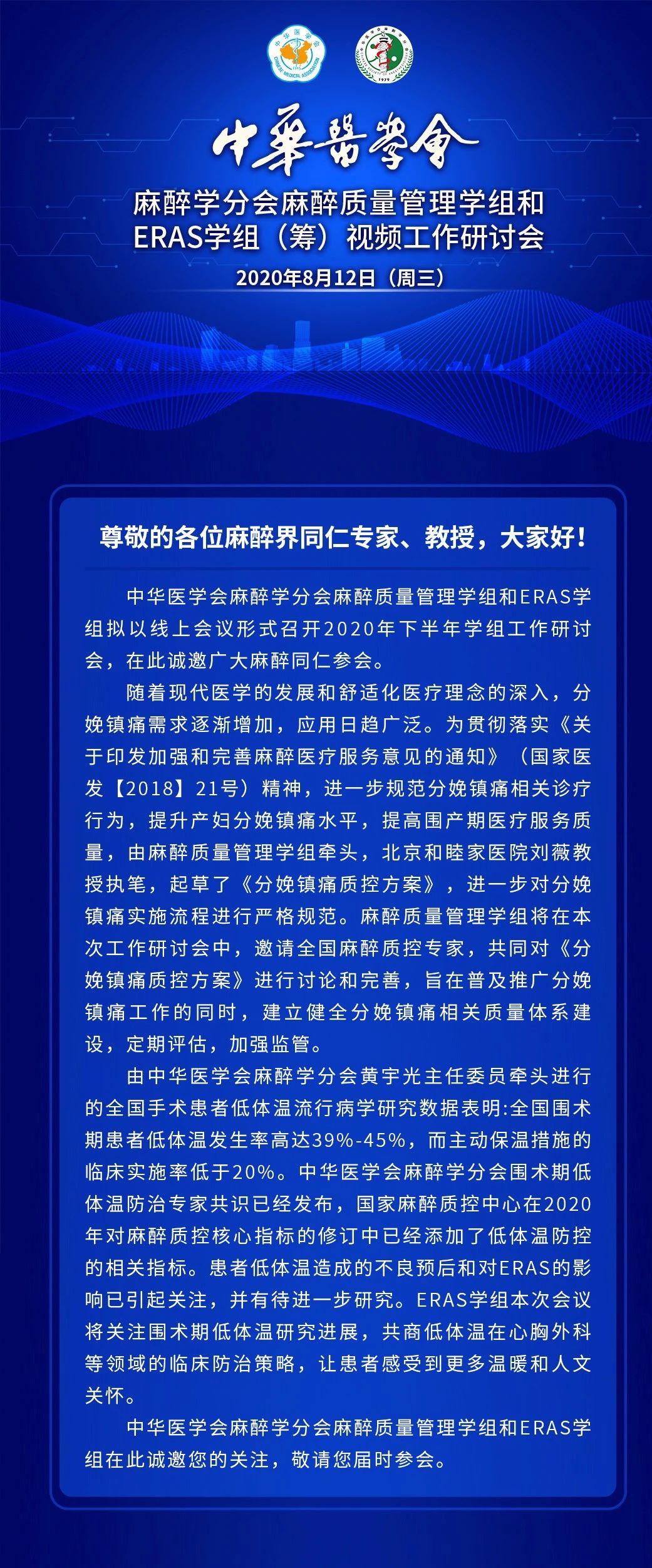 中华医学会麻醉学分会麻醉质量管理学组和ERAS学组视频工作研讨(新书发布)
