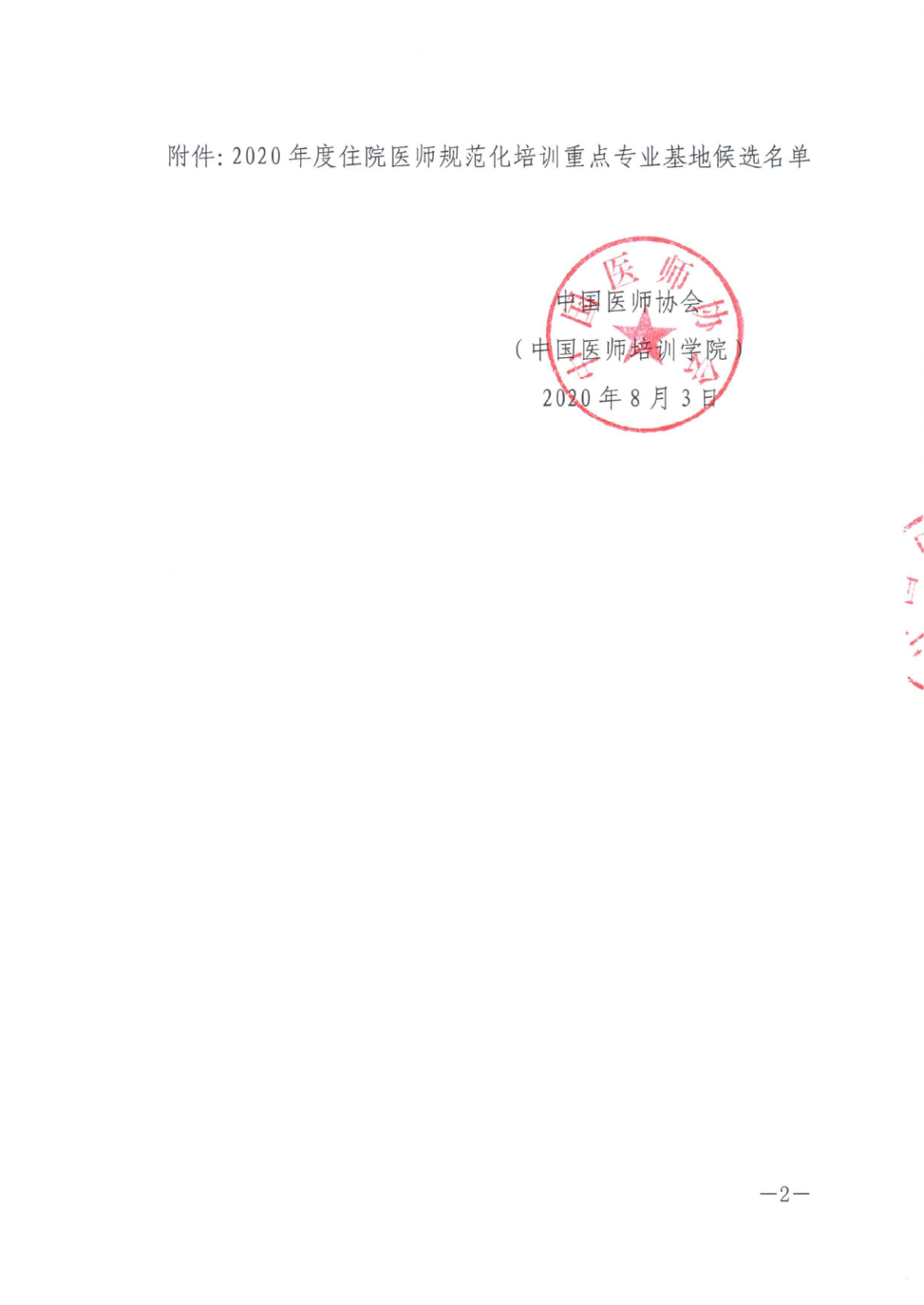 2020年度住院医师规范化培训重点专业基地候选名单公示