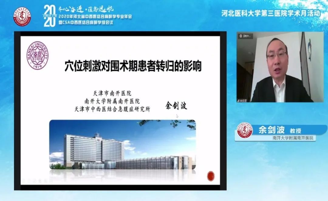 南开大学附属南开医院的余剑波教授介绍了穴位刺激对围术期患者转归的影响。ERAS理念指出麻醉医生不仅需要关注手术麻醉过程,同时应关注麻醉后患者转归。余剑波教授简述了穴位刺激走向国际的发展史,穴位刺激的应用也在争议中逐渐被认可。余教授通过列举了大量已有的研究成果,从改善围术期神经认知障碍、稳定循环、疼痛、术后转归、胃肠功能、脏器保护六个方面讲解了穴位刺激的作用。余教授带来的讲座拓宽了我们对穴位刺激作用的认知领域,利用穴位刺激改善多种术后转归引发人们思考。穴位刺激有望成为围术期改善预后的重要组成部分。