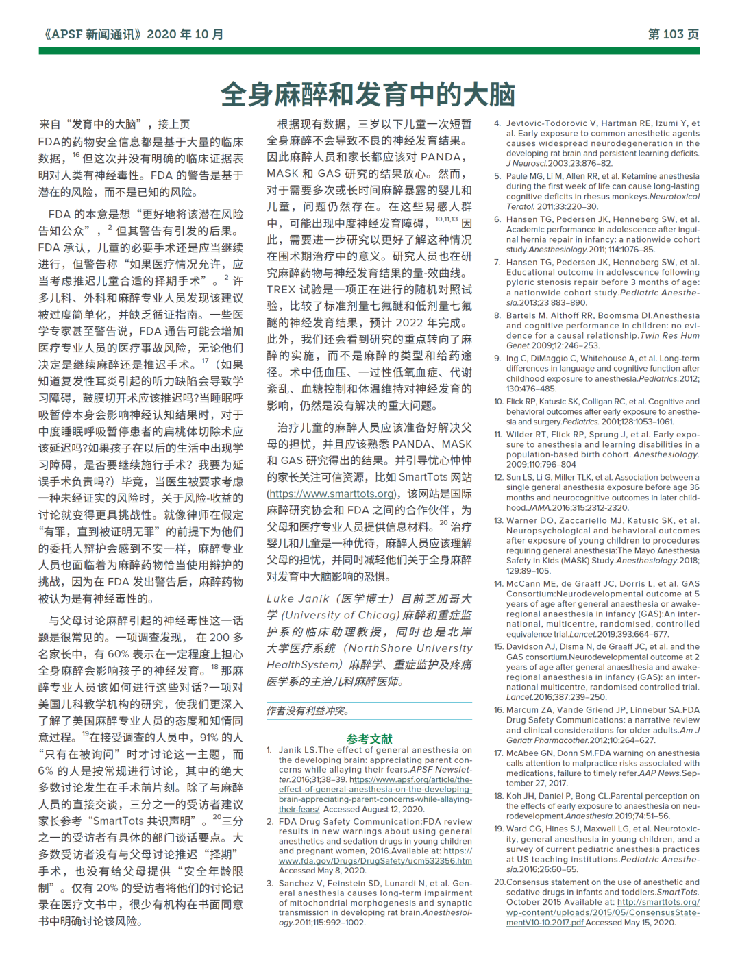 【APSF 新闻通讯】全身麻醉对发育中大脑的影响:是时候缓和这种担忧了吗?