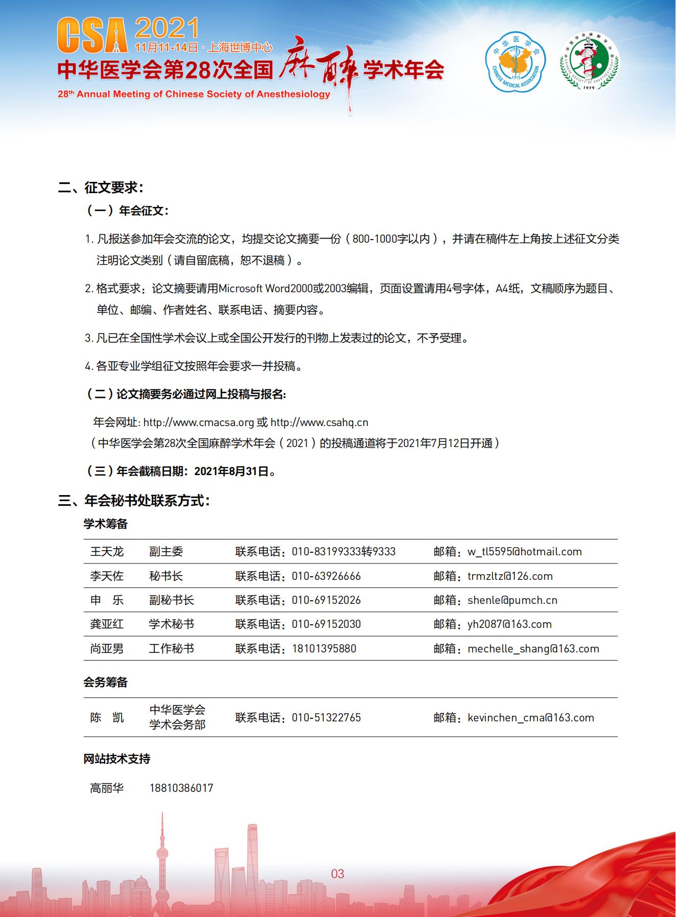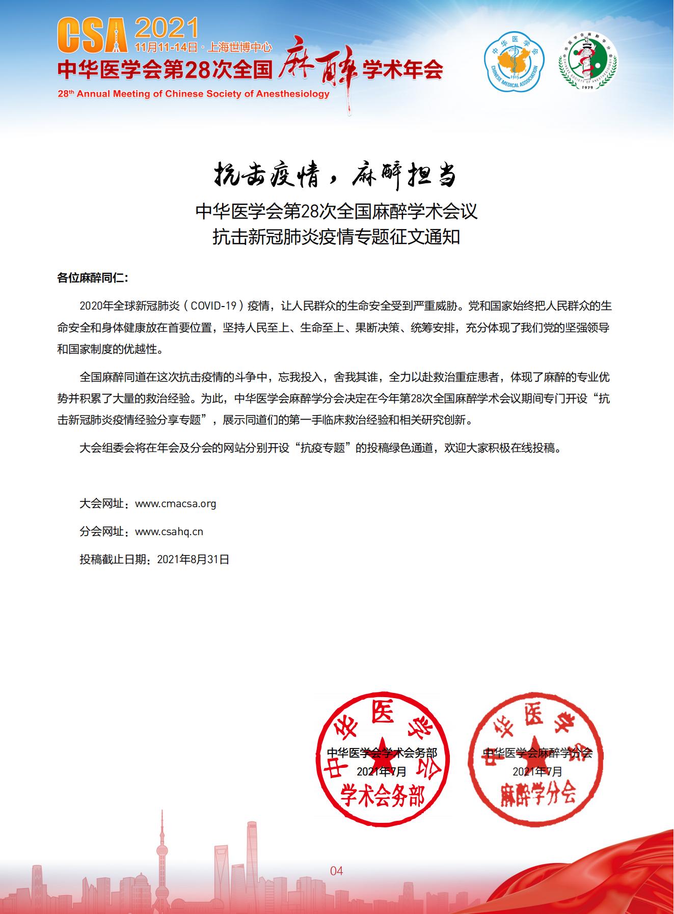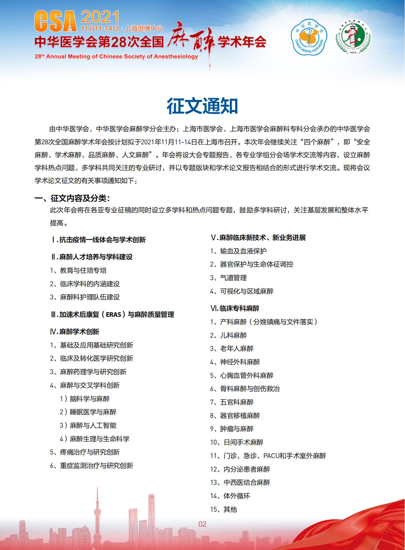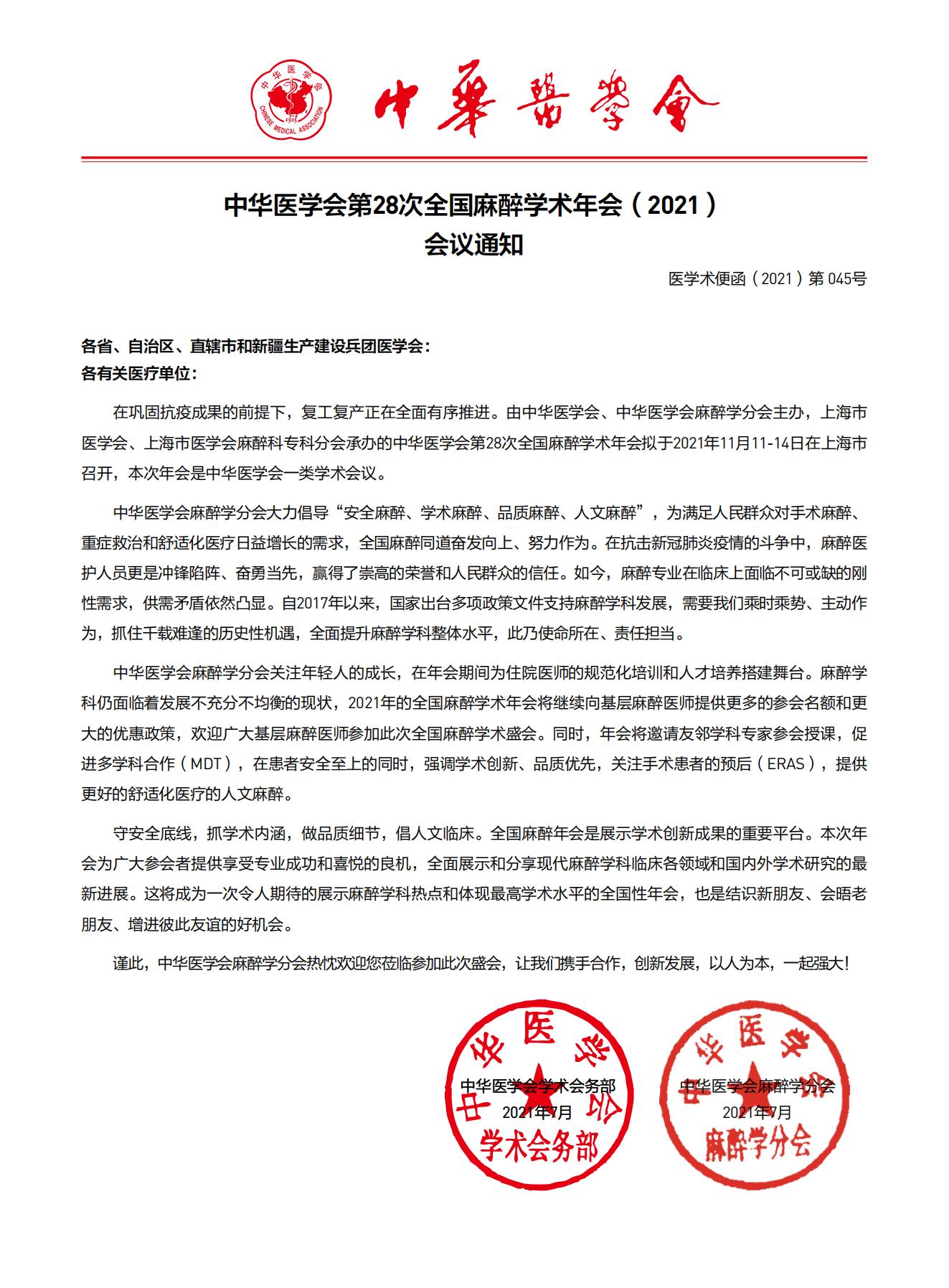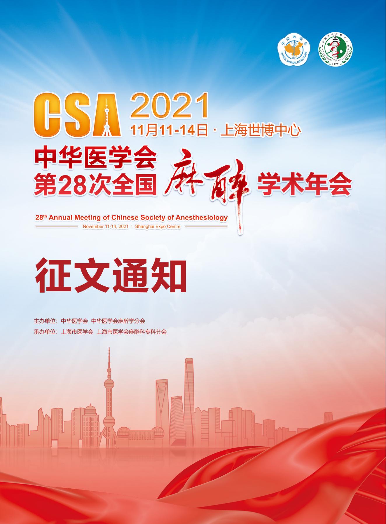 征文通知 | 中华医学会第28次全国麻醉学术年会(2021)