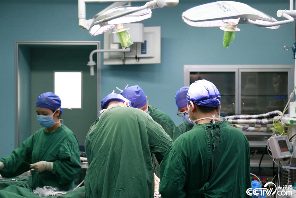 手术室现场,外科医生正全神贯注地给病人做手术。