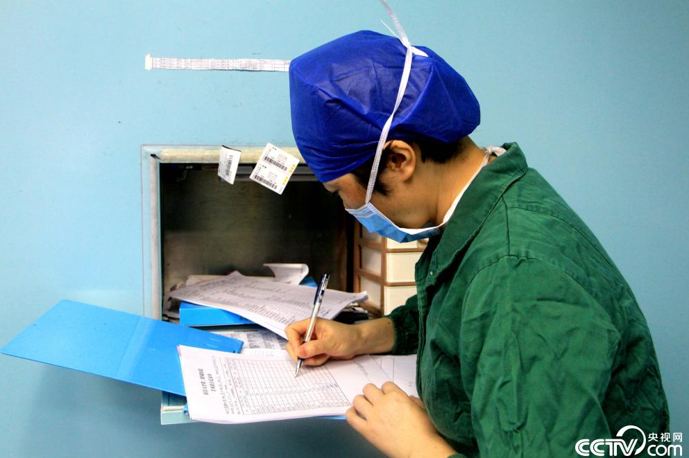 护士正在填写手术清点记录单。