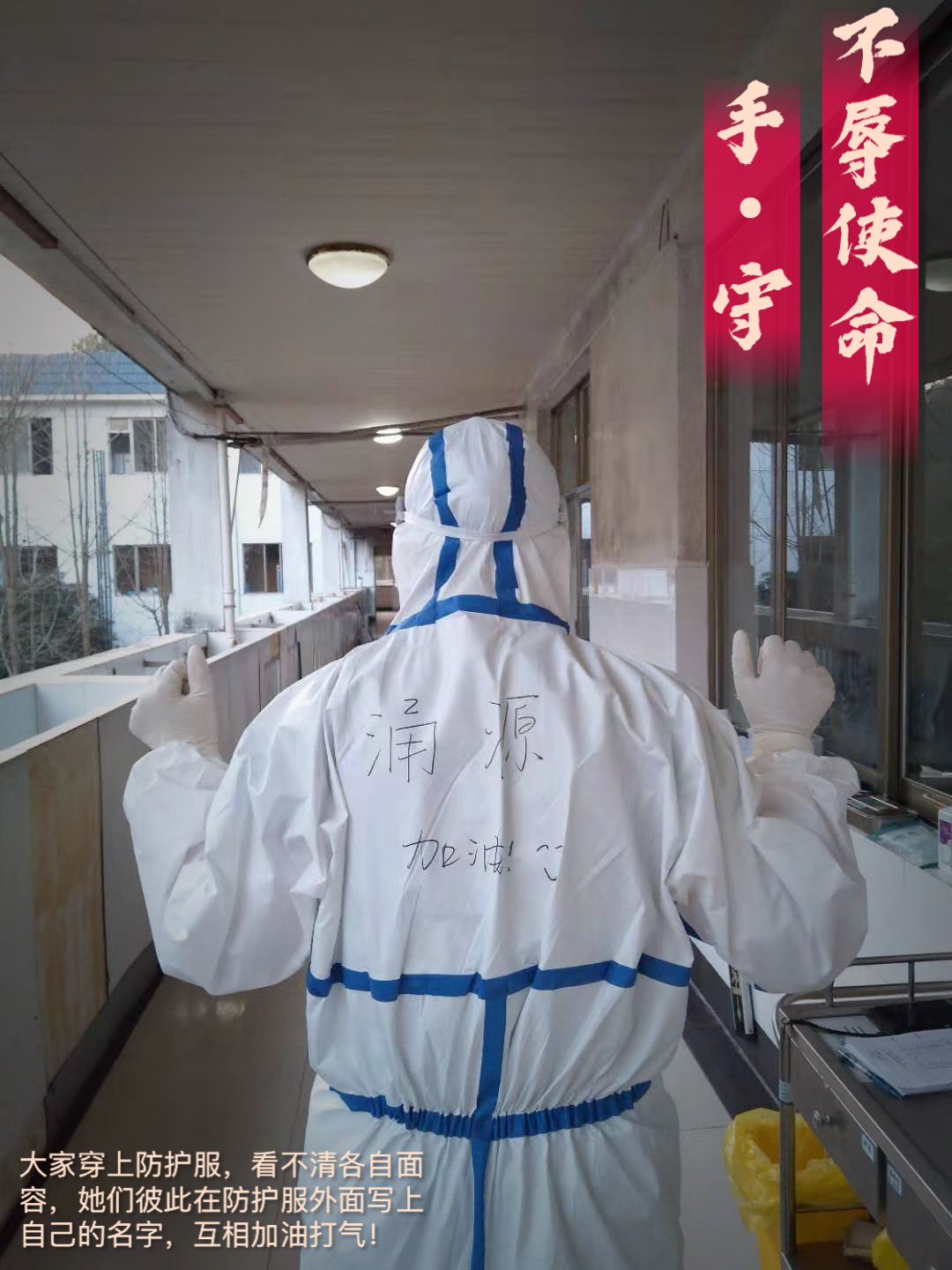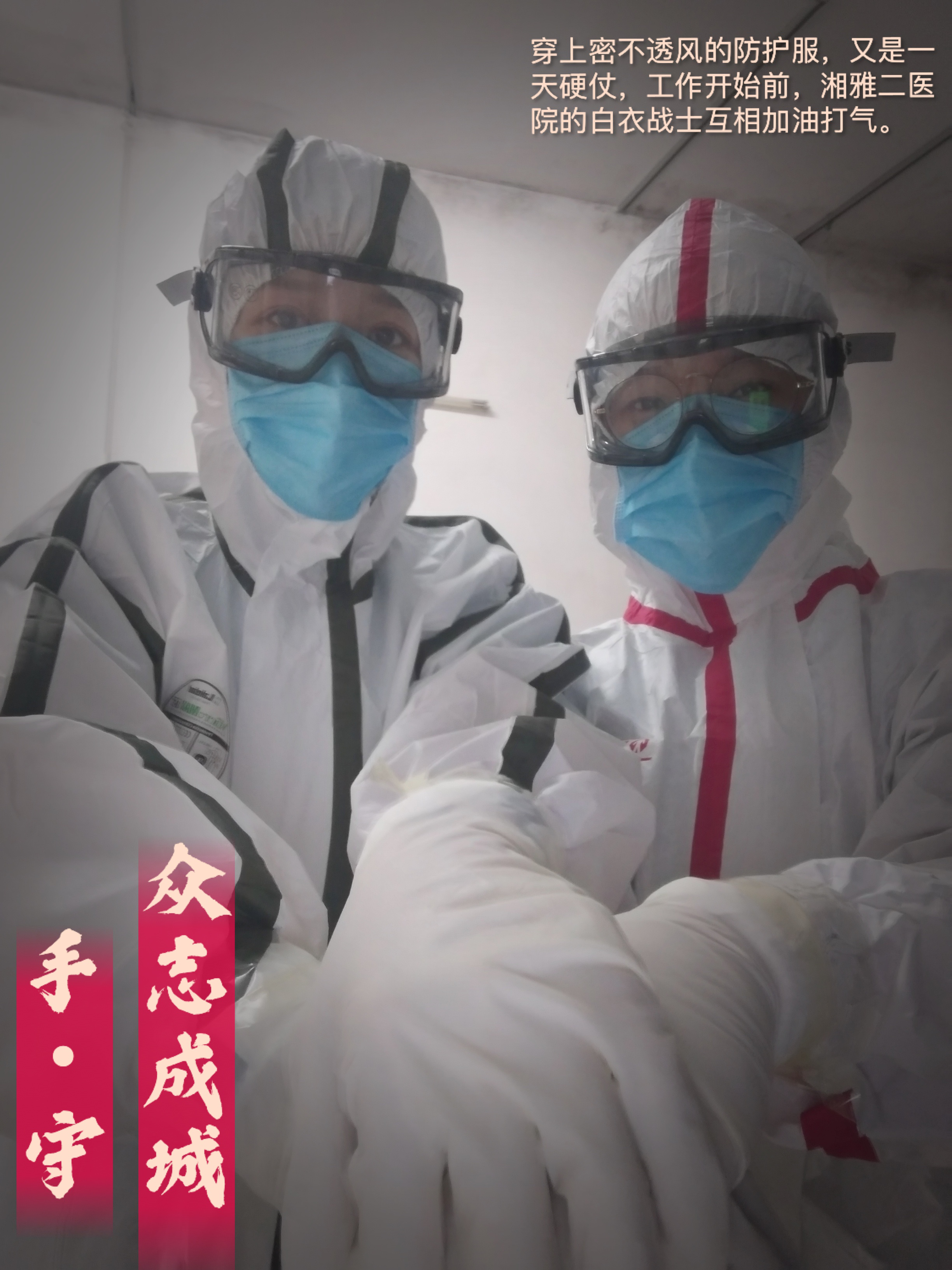 有一种温暖,来自素不相识的你我他。来到长沙市公共卫生救治中心,穿上密不透风的防护服,戴上口罩和护目镜,我们谁也不认识。战友们在各自的衣服上写上名字和医院,互相加油打气。虽然不知道你是谁,但我们知道这一切都是为了谁。