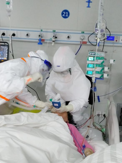 一个气管插管完成,两位医生又马不停蹄奔赴下一个需要插管的病区,去完成新的抢救任务。