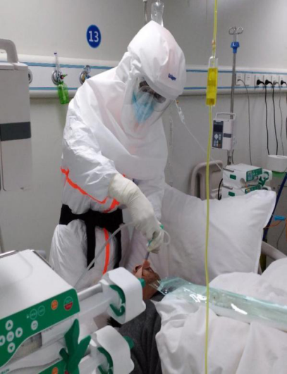 在此紧要关头,郑锋医生临危不乱,快速稳当一下成功完成气管插管,随后,两位医生再次确认了插管成功并调整患者的呼吸参数。十来分钟后,患者的血氧饱和度上升至90%,缺氧症状也得到改善,生命体征逐渐趋于平稳。此时身披盔甲,大汗淋漓的郑锋才如释重负,缓过来向他的上级也是搭档调侃一句,下次换你来托下颌,我来给药,我已经感觉不到我的手是自己的手了。要知道刚才插管前托下颌好几分钟,患者血氧饱和度始终升不起来。郑锋医生虽然一米八的个头,一双大手,但是保持一个动作压着面罩,保证氧气不漏出,手麻了也不能松手,最后都是靠意志撑到患者血氧饱和度稍微提高。虽然当时他心里一万个坚持不了了,一万个希望他的搭档快点推药让自己可以快点插管,解放他那已经麻木的双手,但是同样作为一个极富经验的高年资麻醉医生,他心里清楚,他的搭档不能推药,他们要等,等患者心率下降到合适的范围,等血氧饱和度升到让人安心的数值,等一个可以保证患者能够耐受气管插管操作的时机。虽然这项操作只要几分钟,但是每一次插管都是麻醉医生同患者同呼吸共心跳的应激时刻。每一次成功的插管,都能把重症患者从死亡线拉回来,为患者的救治赢得宝贵的时间,即使冒着被感染的巨大风险,即使面临无形的千钧压力,他们也愿意坚强的扛起来前行,毫无怨言。
