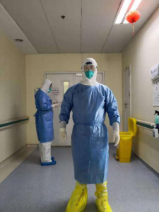晏鑫,预备党员,2018年在肖维民书记的推荐下,申请加入中国共产党。此次疫情暴发以来,他积极响应党组织的号召,在第一时间回归工作岗位,到隔离病房参与新冠肺炎患者的救治。疫情之初,工作条件比较艰苦,为了节约难得的防护服,他在病房的第一个夜班,从晚上六点进舱,一直忙到凌晨四点,出来休息三个小时,七点再进舱,一直到中午十二点多才下班。没有一句怨言,只有拼搏的勇气,因为他是一名党员医生!