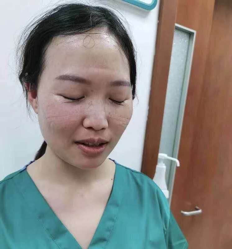 一线防疫工作不仅面对高感染风险,还要忍受防护服下种种不便,上班的不规律,防护面罩的勒痕,汗水长期浸泡带来的湿疹......这些“勋章”让我们感觉既崇敬又心疼。