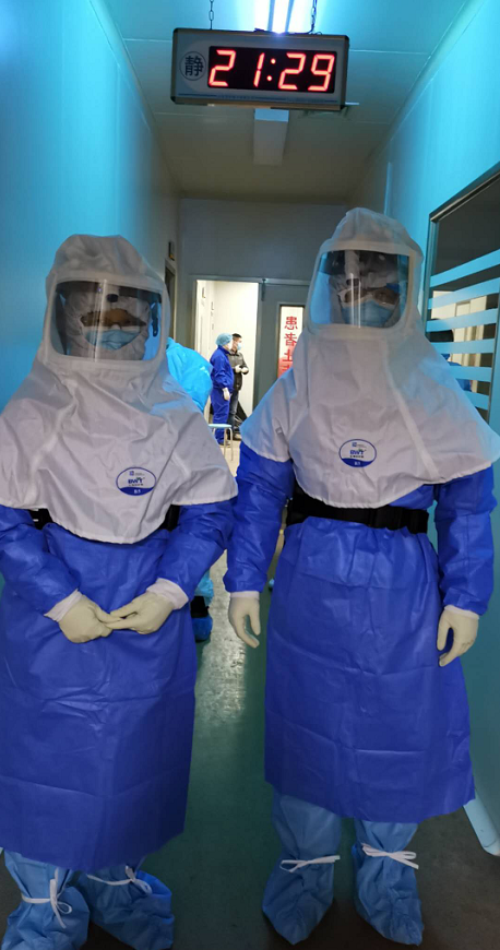 进入病房前需要从头到脚全副武装,四层密不透风的防护服加在一起有几十斤重,每一步操作,每一口呼吸,都是那么不容易。有些操作还需要同事帮助,并反复确认安全性。穿防护服那一刻,心情既紧张、又激动。紧张,是因为肆虐的病毒主要依靠呼吸道飞沫传播,插管时极其靠近患者的呼吸道,特别是患者出现呛咳时,会产生大量飞沫及气溶胶,加剧了感染风险;激动,是因为能参加重症患者的一线急救工作感到光荣和自豪,也是大家对我专业的认可。深吸了一口气,稳定了一下情绪,将操作程序在脑子里不停演练,一定平稳插管,保证患者通气。