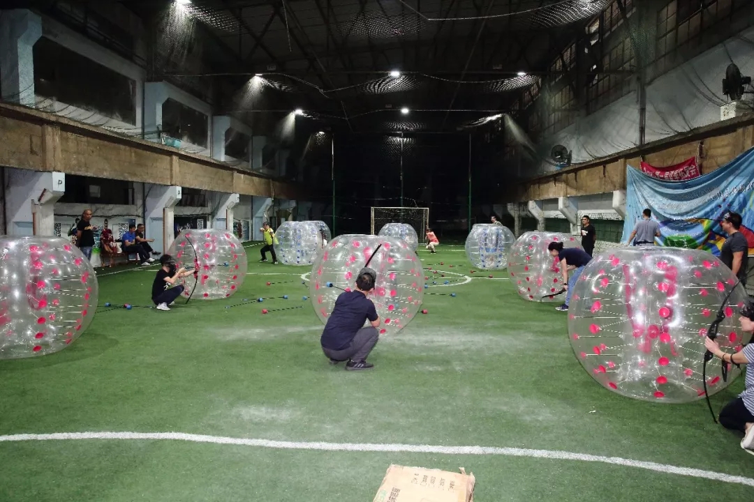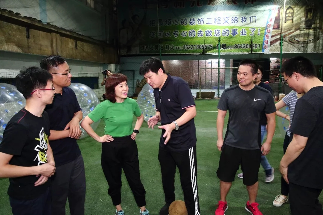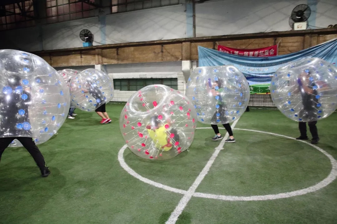 接下来,泡泡球足球赛再次将活动气氛推向了高潮。红蓝两队,各队队员依次身着泡泡球奔跑踢足球,途中各队队员相互碰撞,你撞我,我撞你,碰到对手绝不手软,比赛不断升级,场边的掌声和欢呼声也连绵不断。除了努力比赛求取好成绩之外,学员们也不忘给自己的队伍加油打气,不止热血,也充满温情。