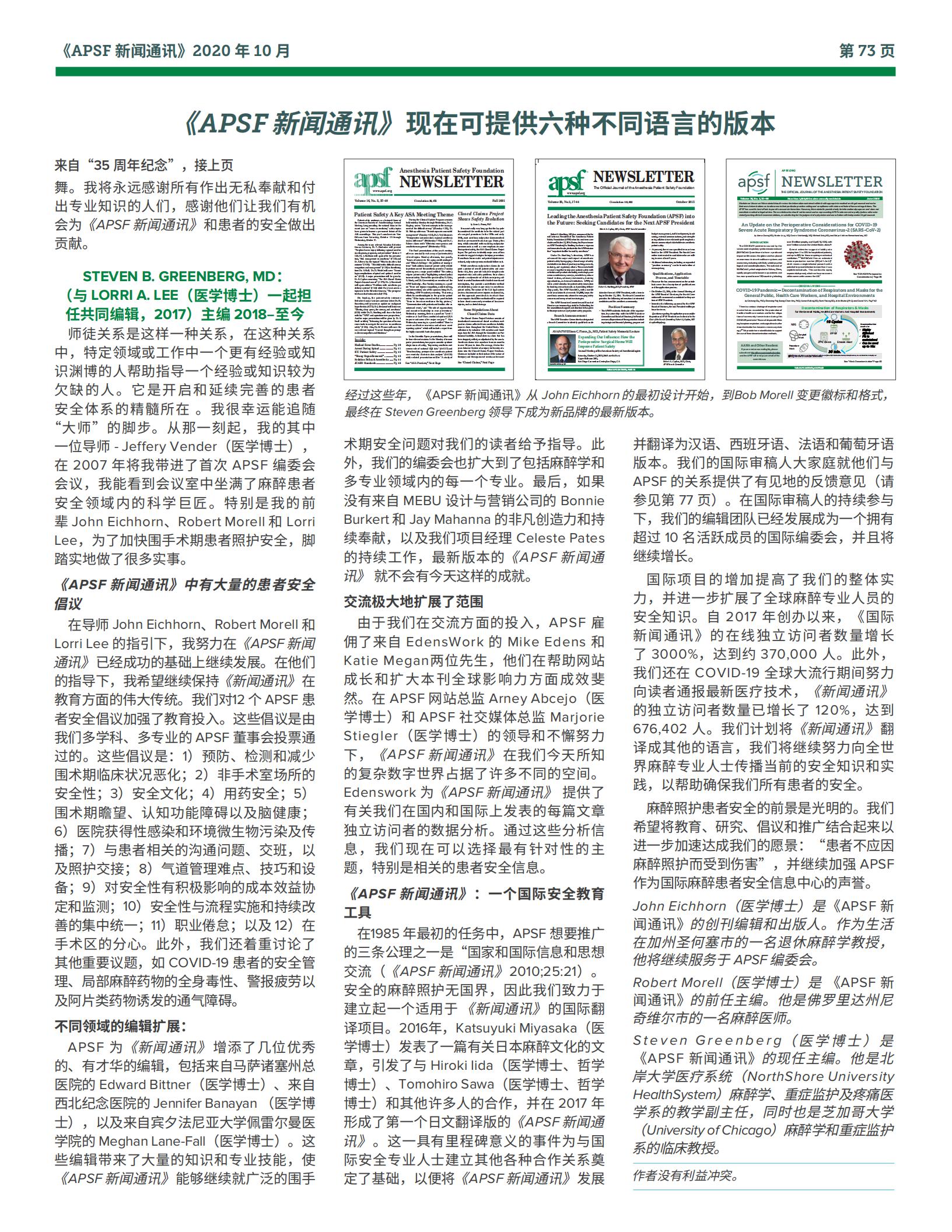 《APSF新闻通讯》创刊 35 周年特刊