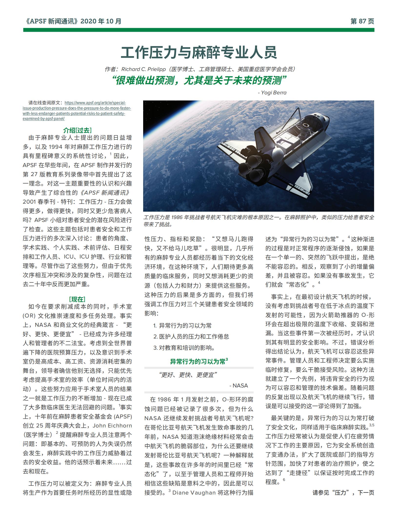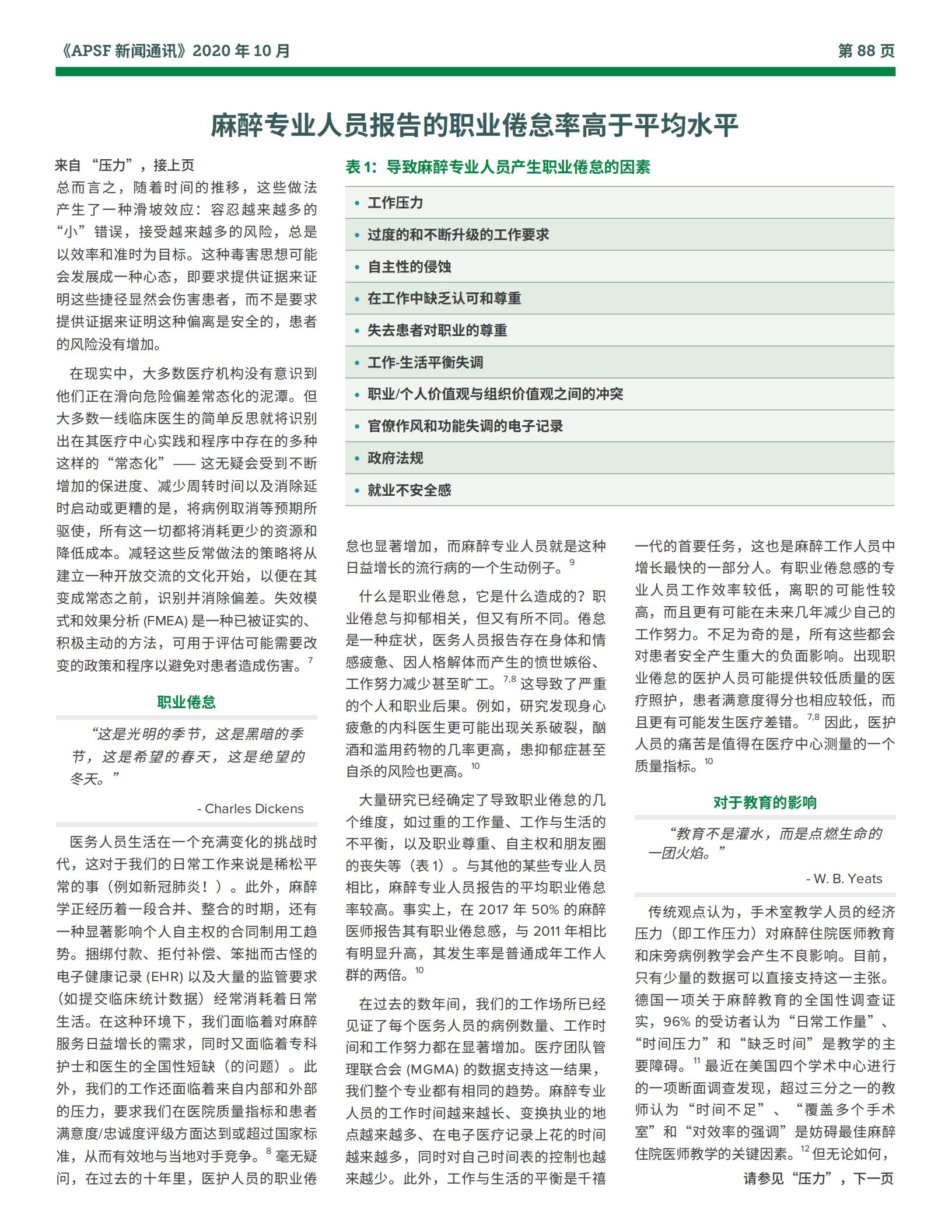 工作压力与麻醉专业人员