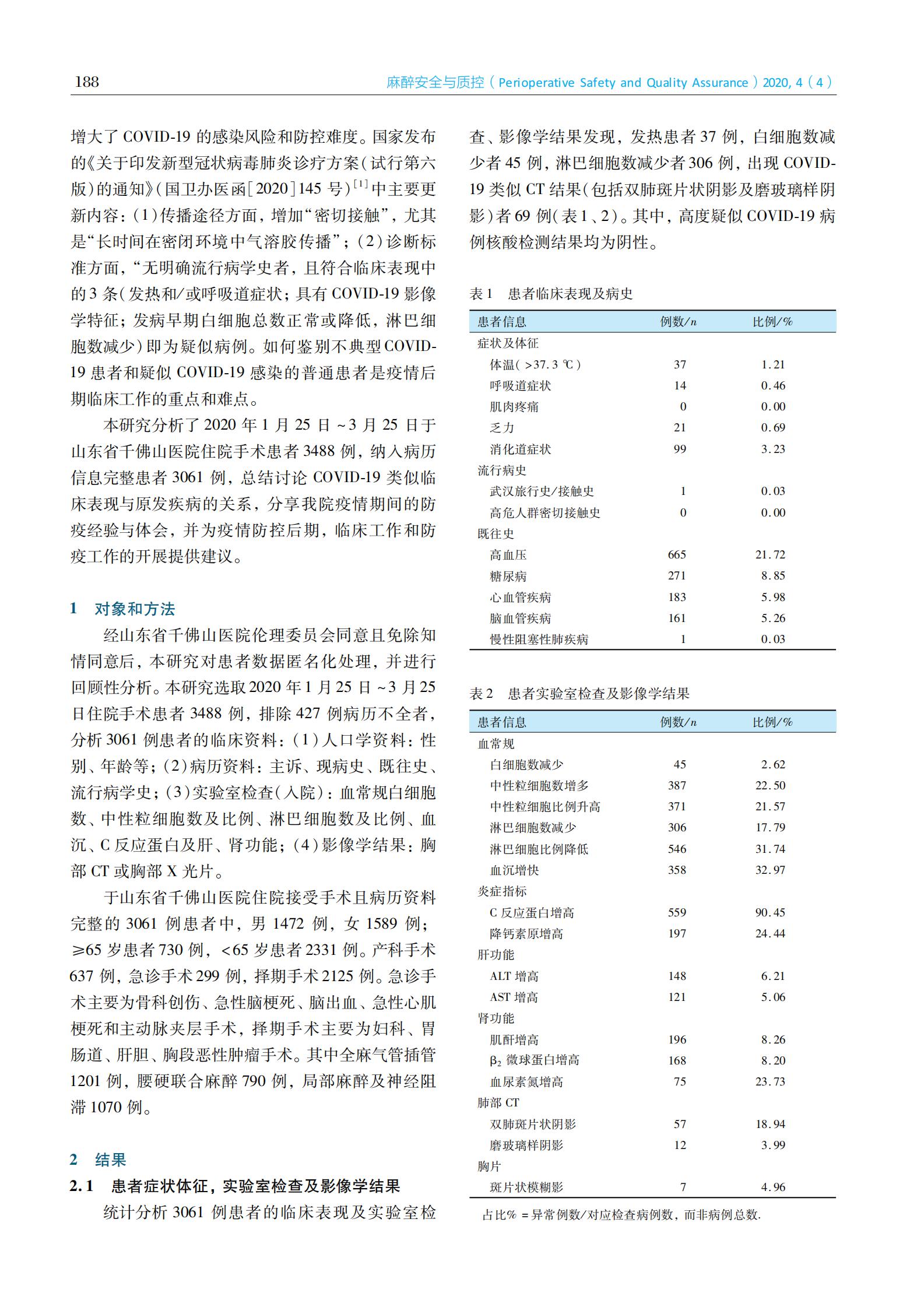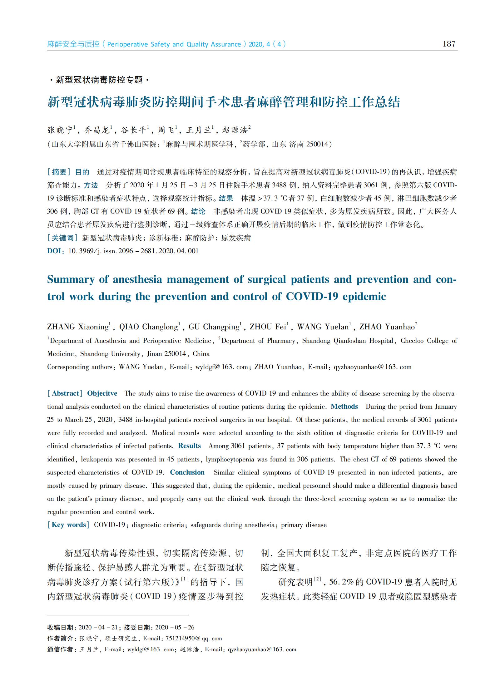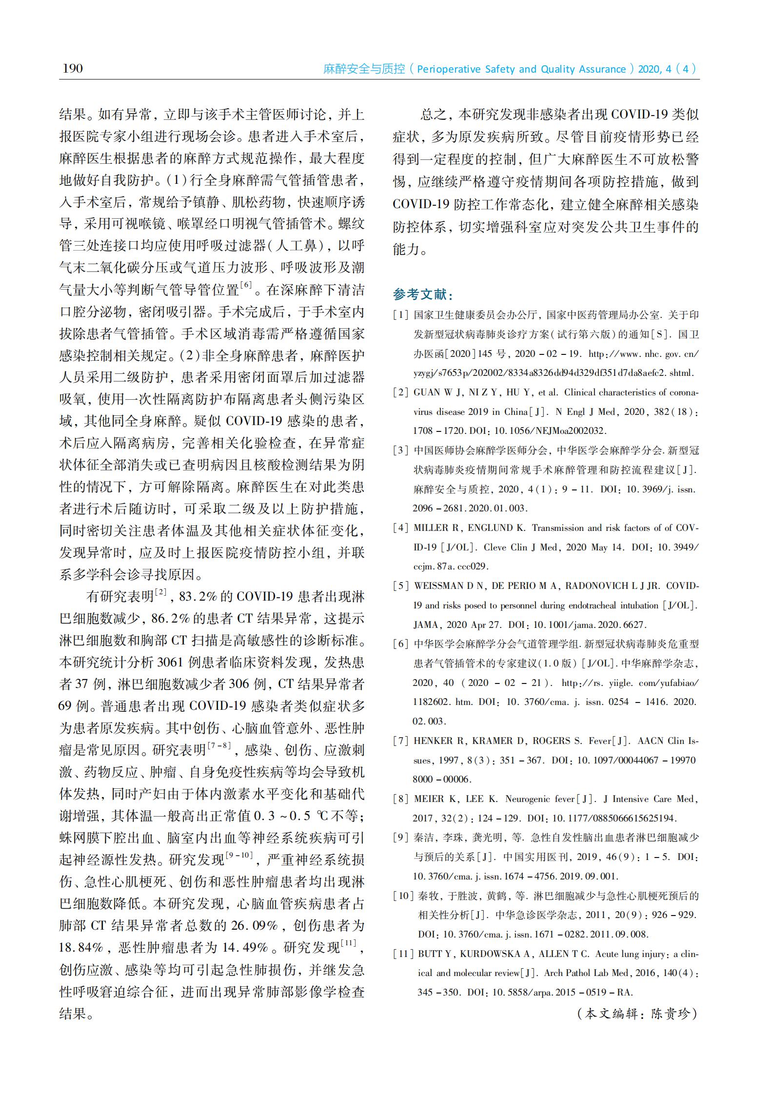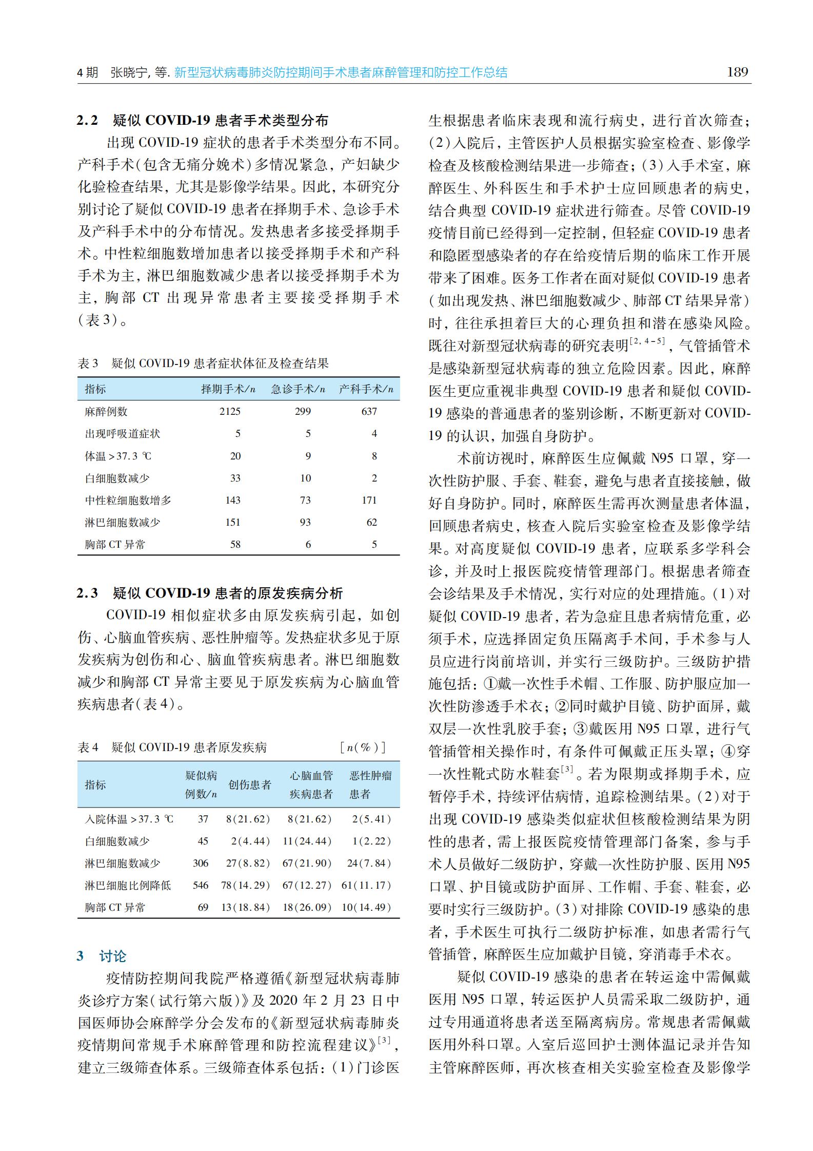 ·新型冠状病毒防控专题 · 新型冠状病毒肺炎防控期间手术患者麻醉管理和防控工作总结