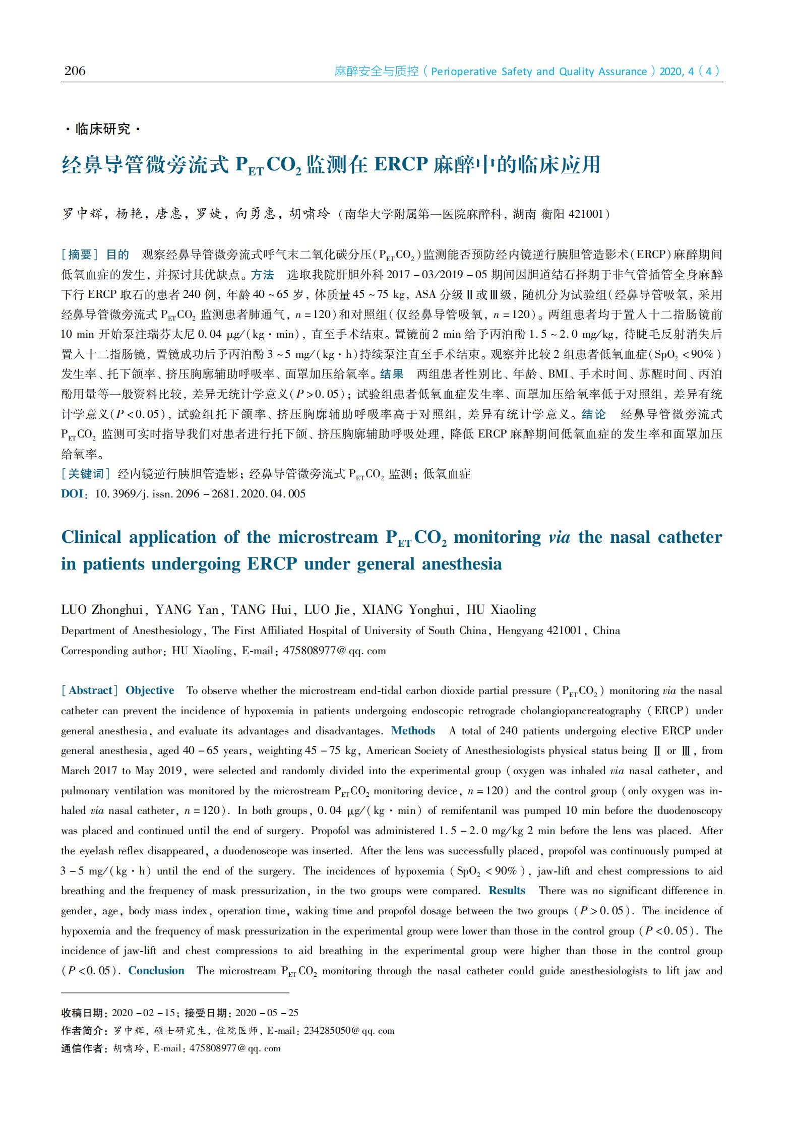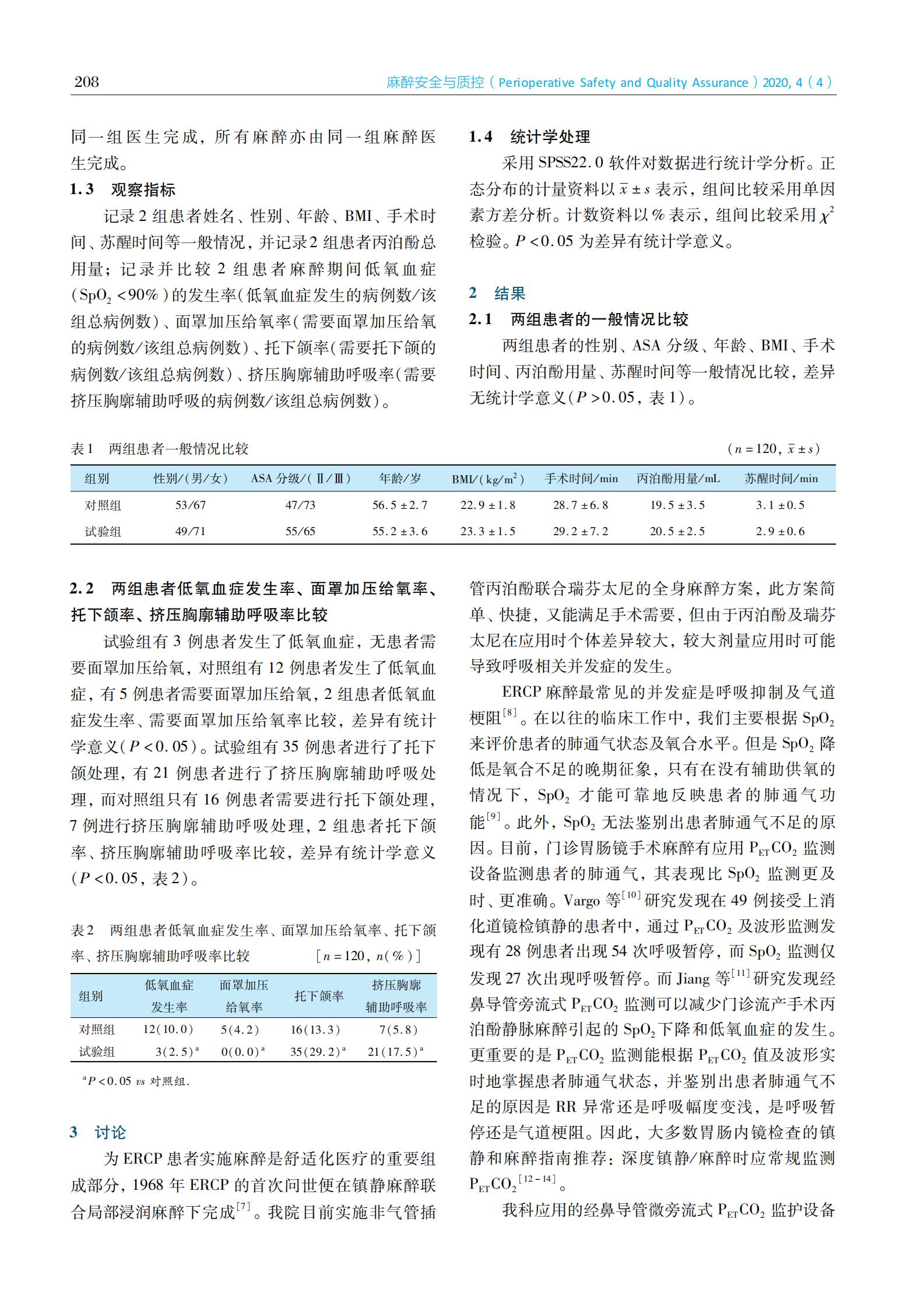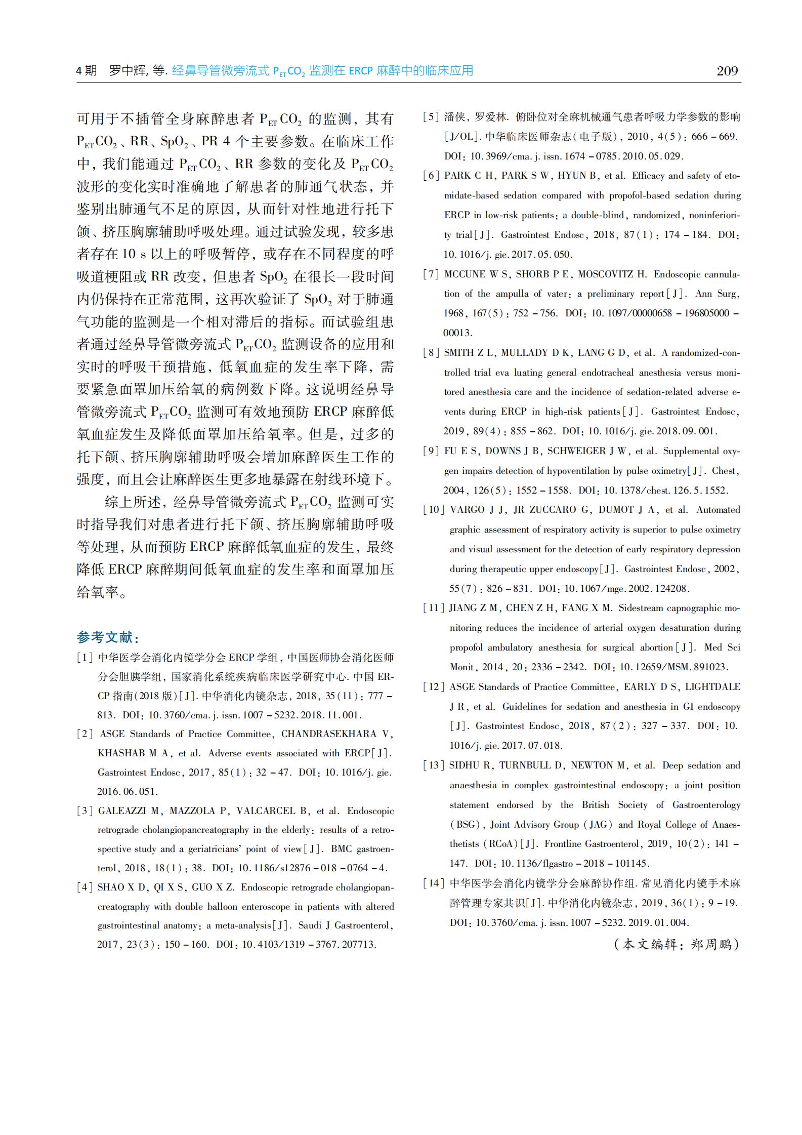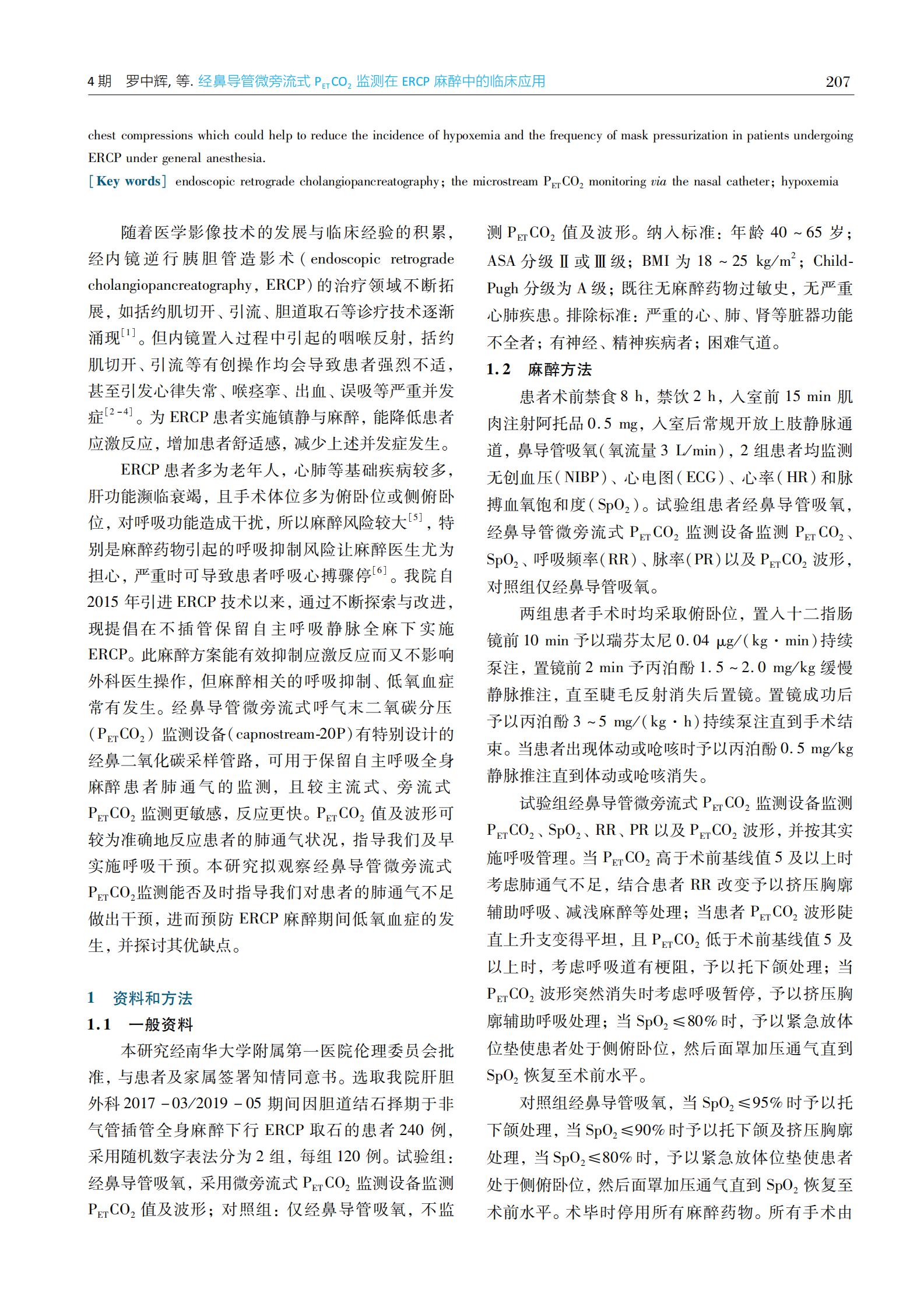 经鼻导管微旁流式PETCO2监测在ERCP麻醉中的临床应用