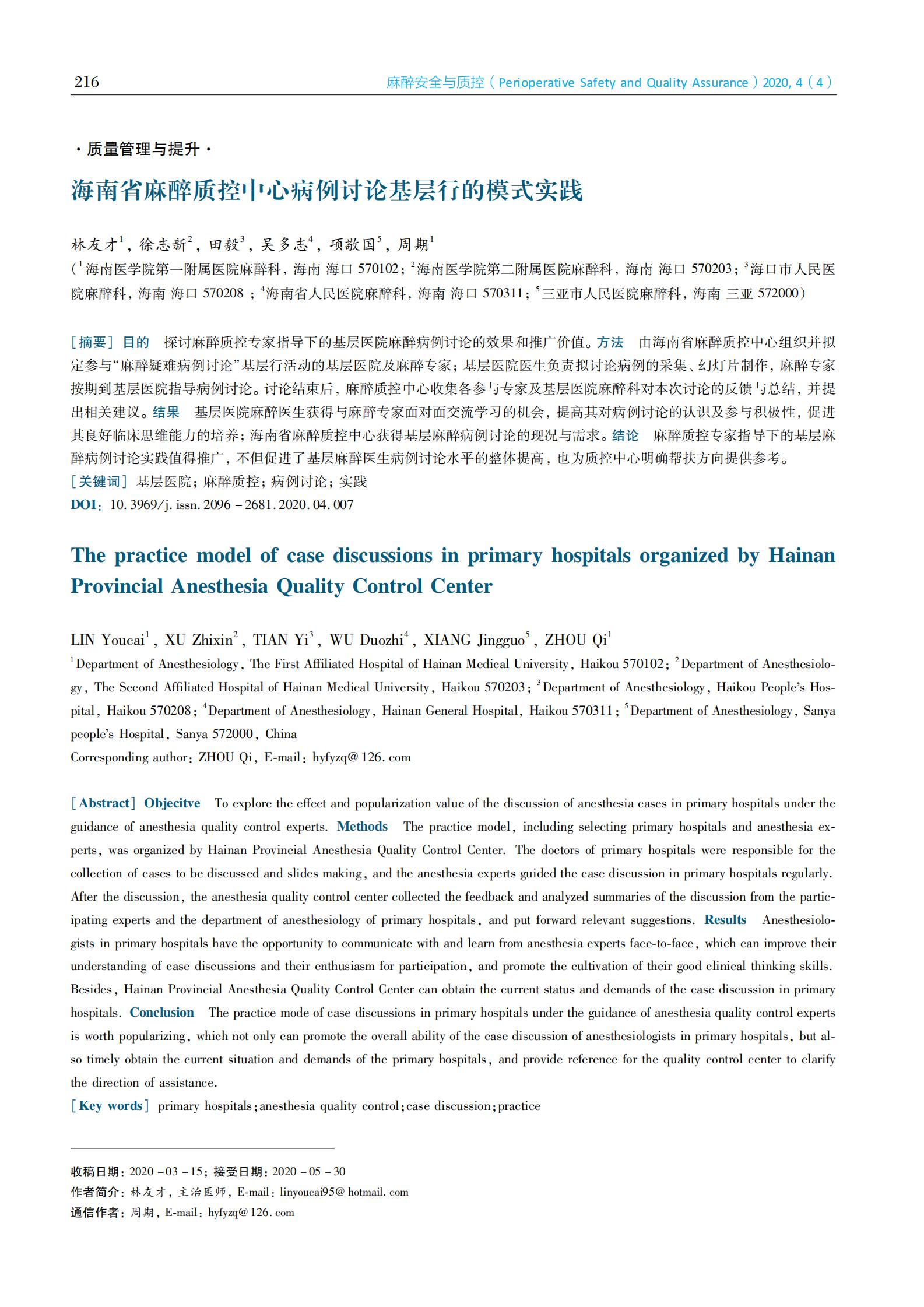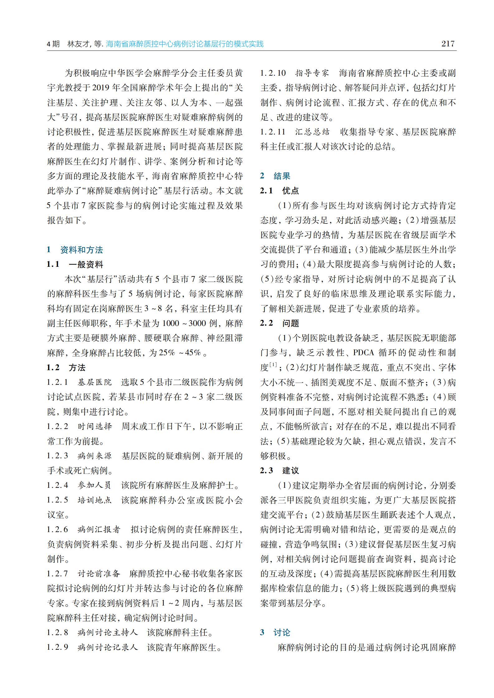 海南省麻醉质控中心病例讨论基层行的模式实践