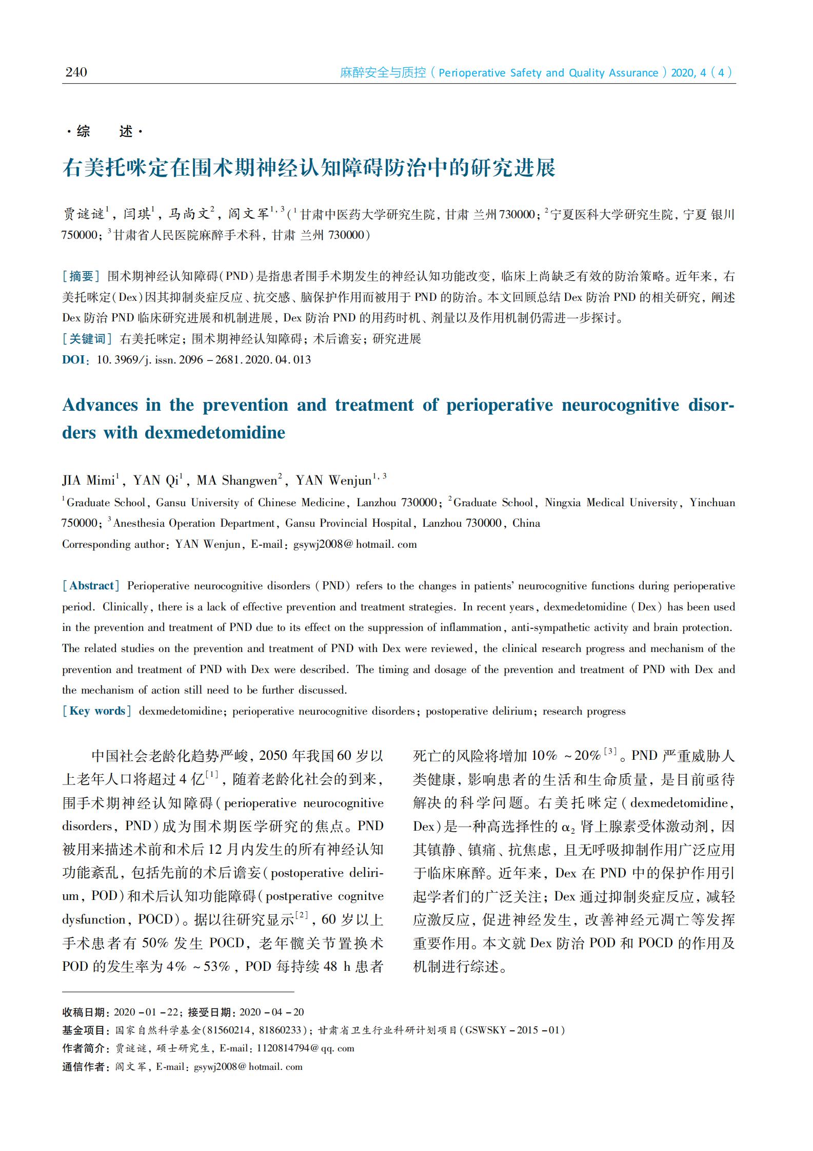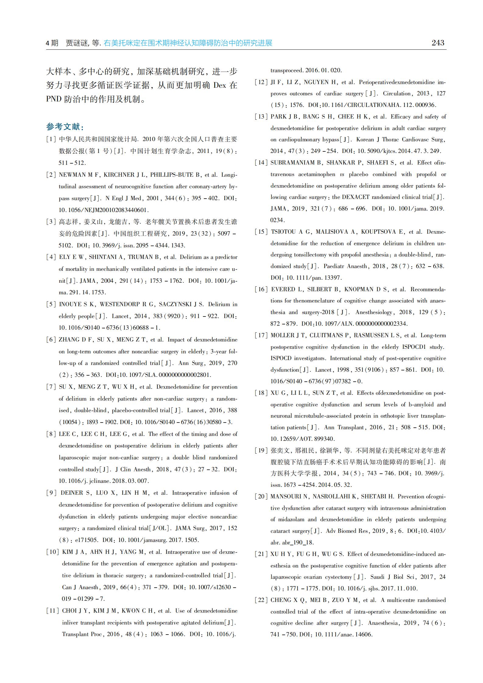 右美托咪定在围术期神经认知障碍防治中的研究进展
