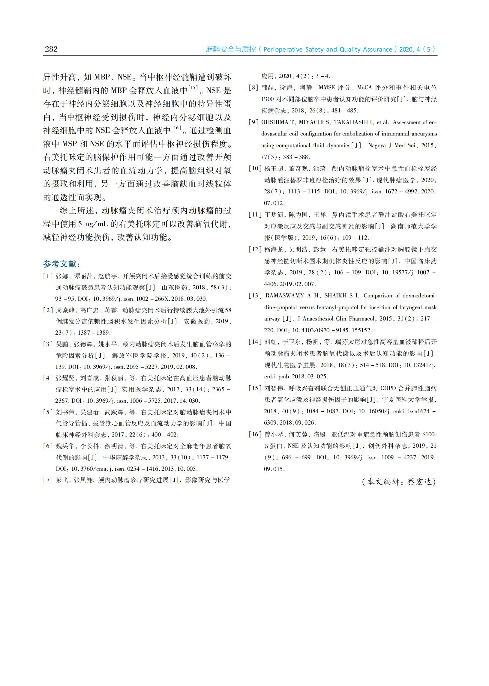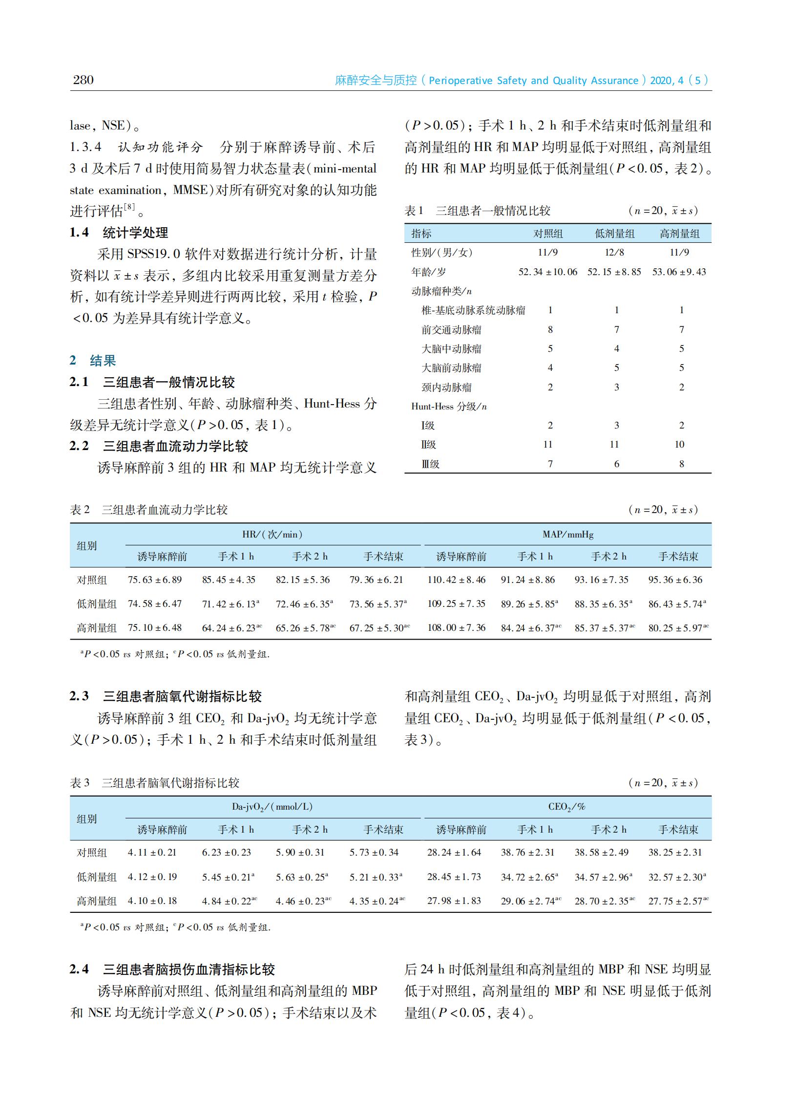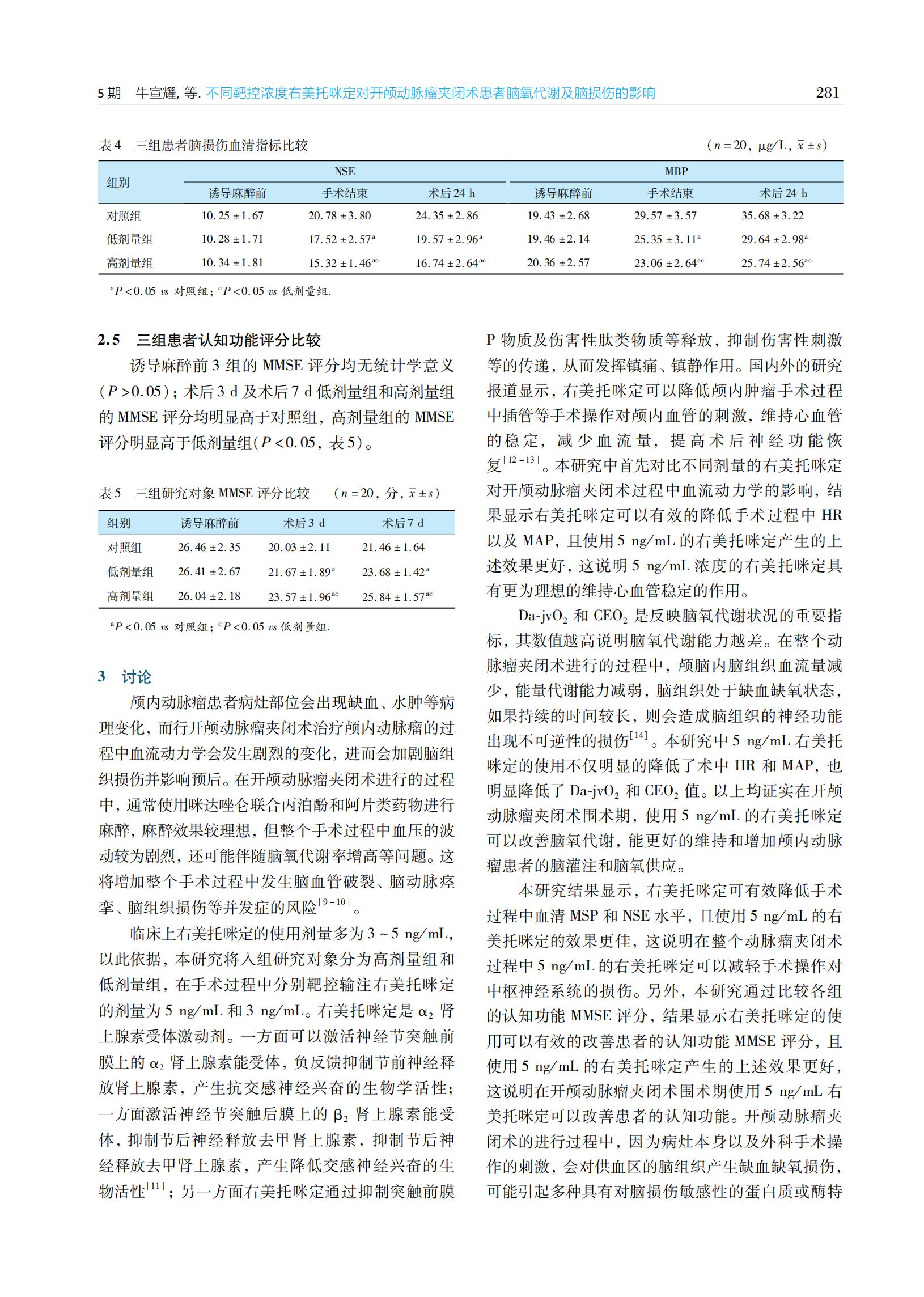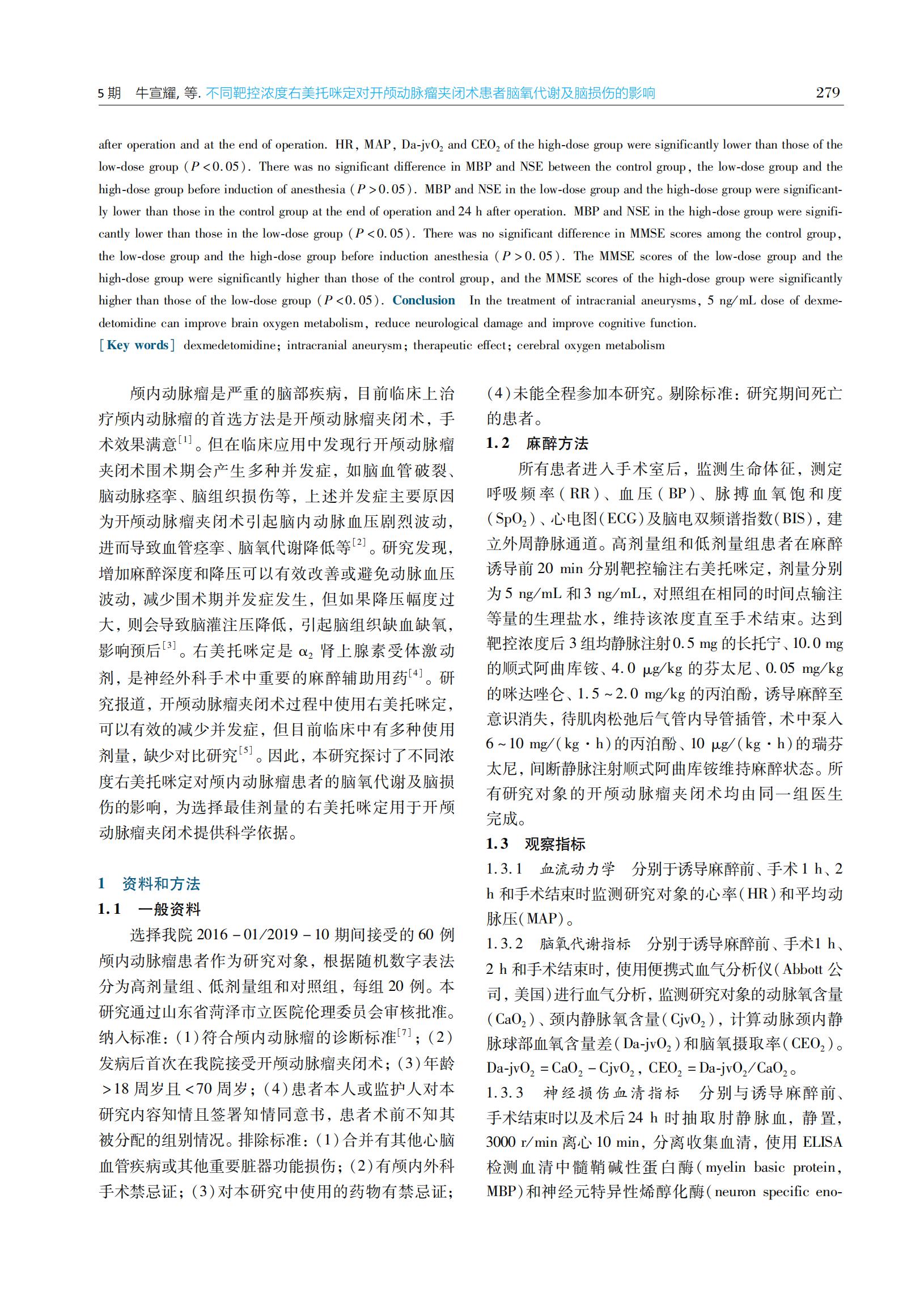 不同靶控浓度右美托咪定对开颅动脉瘤夹闭术患者脑氧代谢及脑损伤的影响