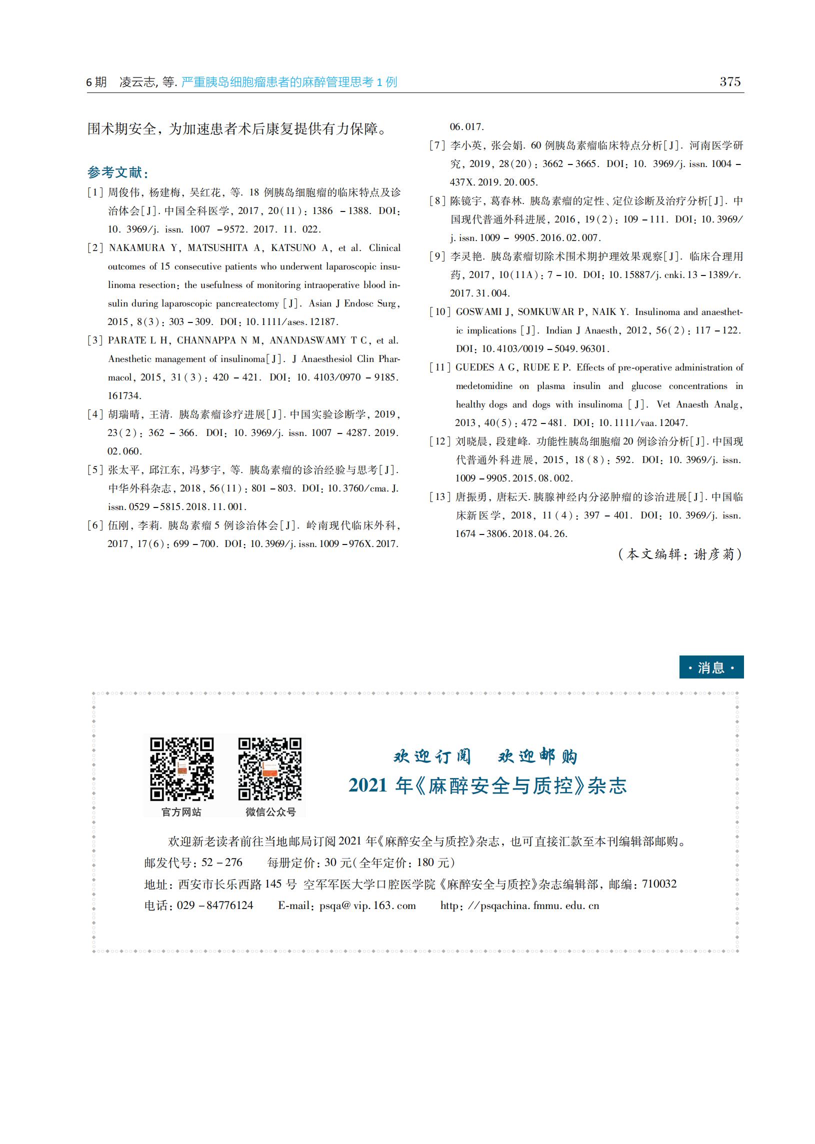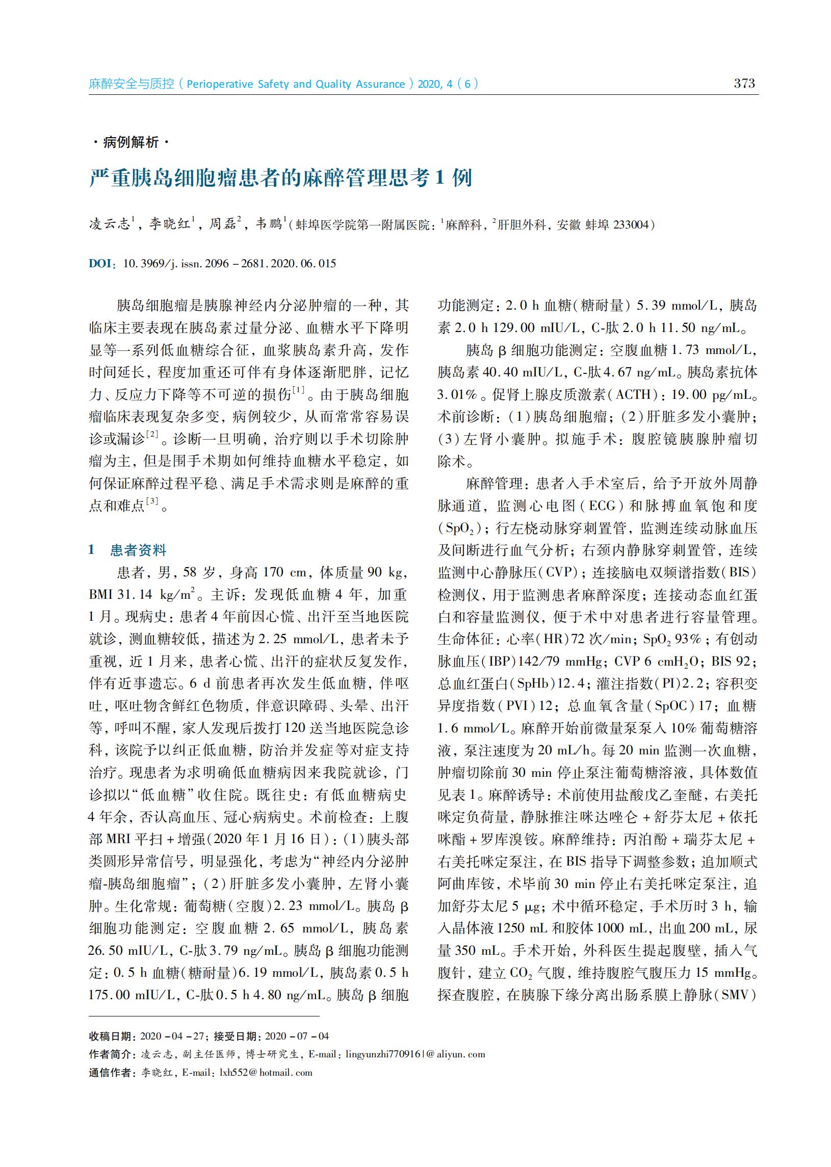严重胰岛细胞瘤患者的麻醉管理思考1例