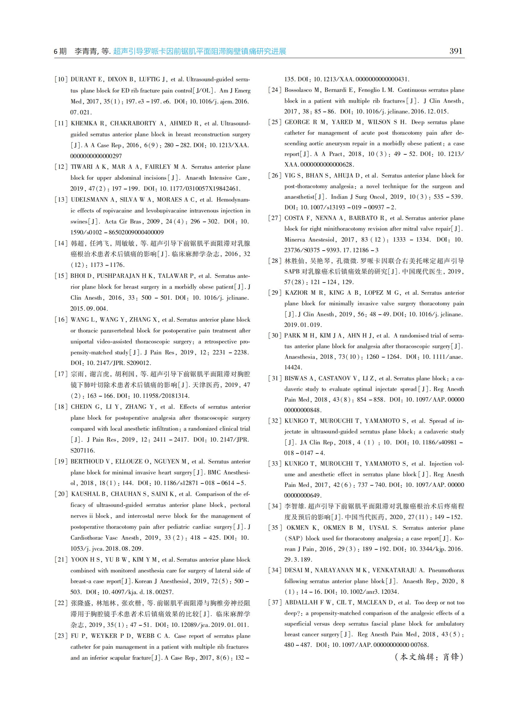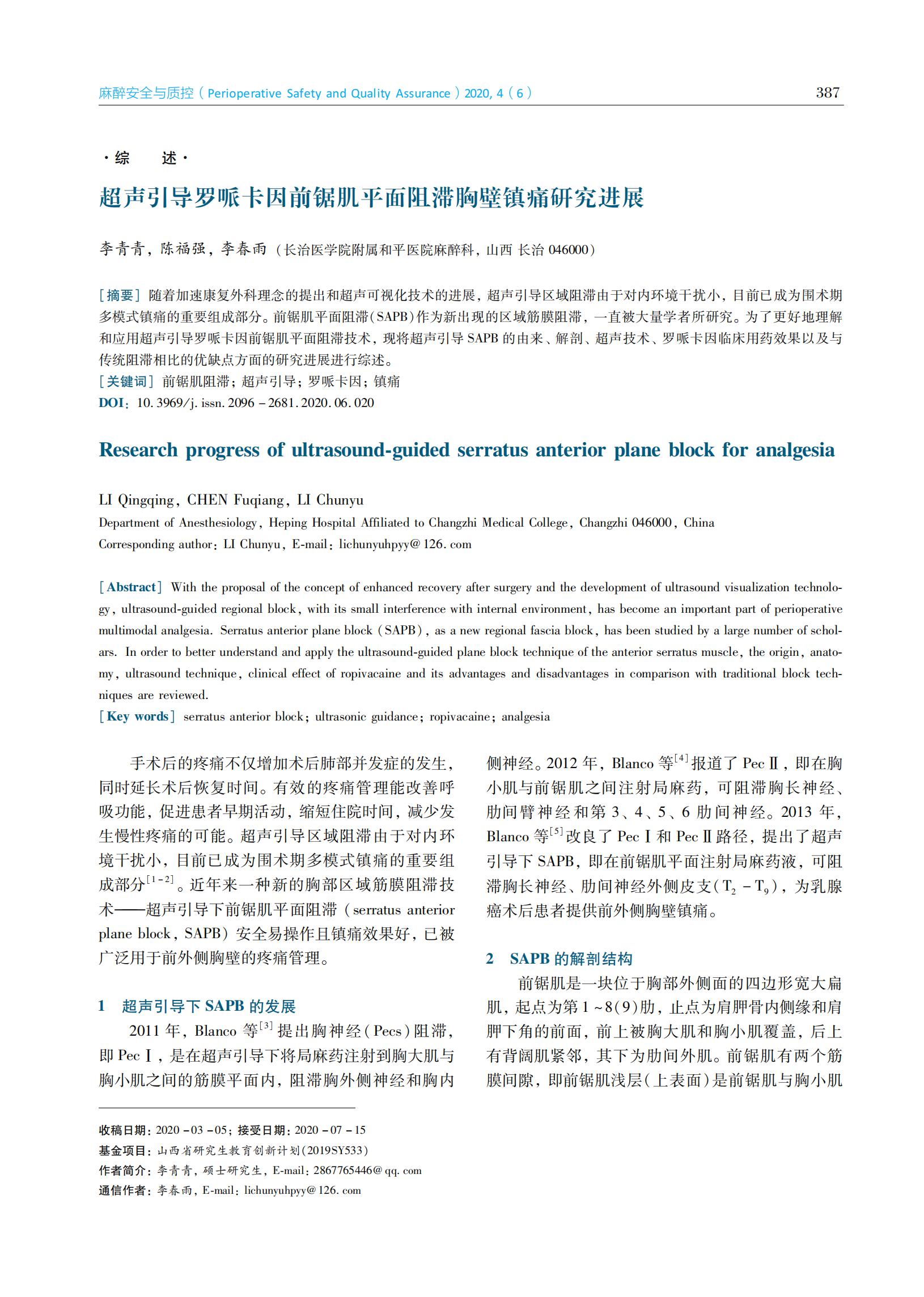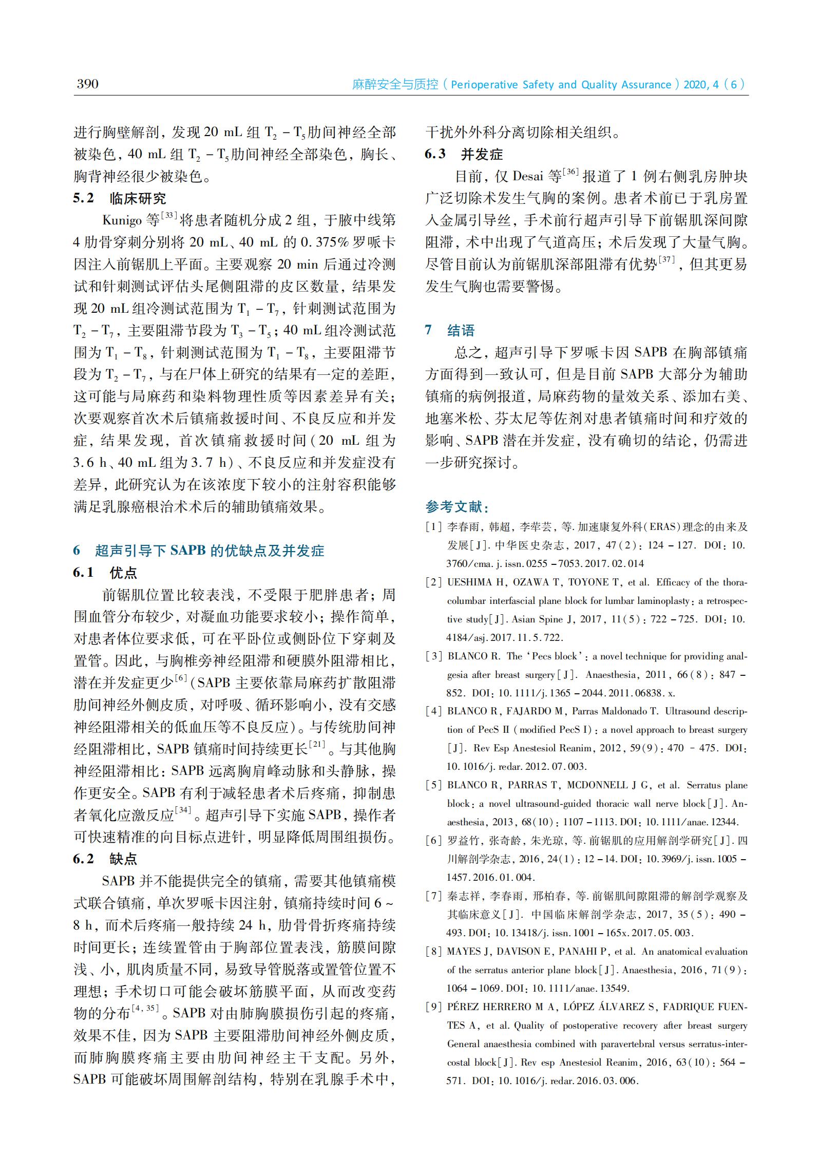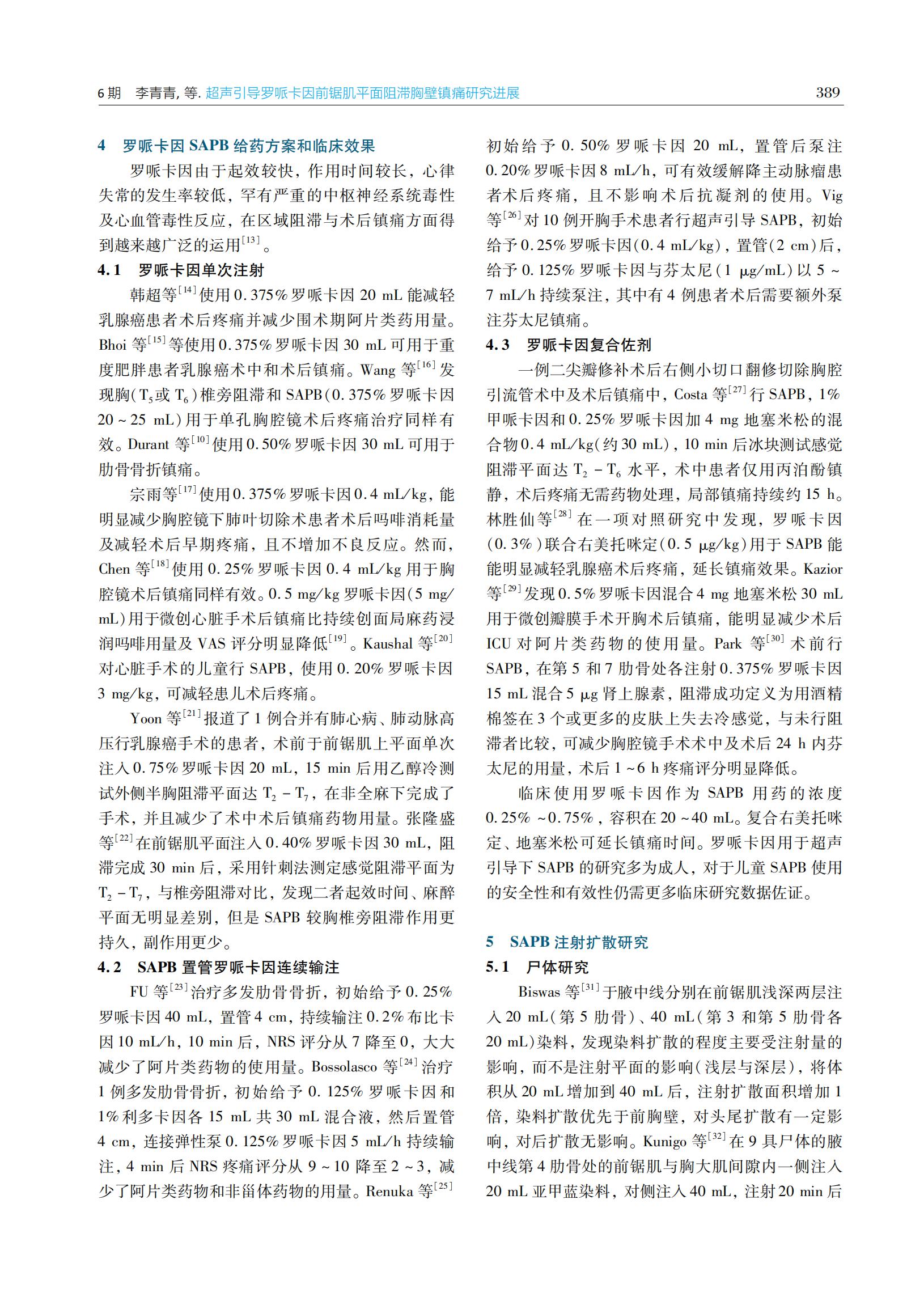 超声引导罗哌卡因前锯肌平面阻滞胸壁镇痛研究进展