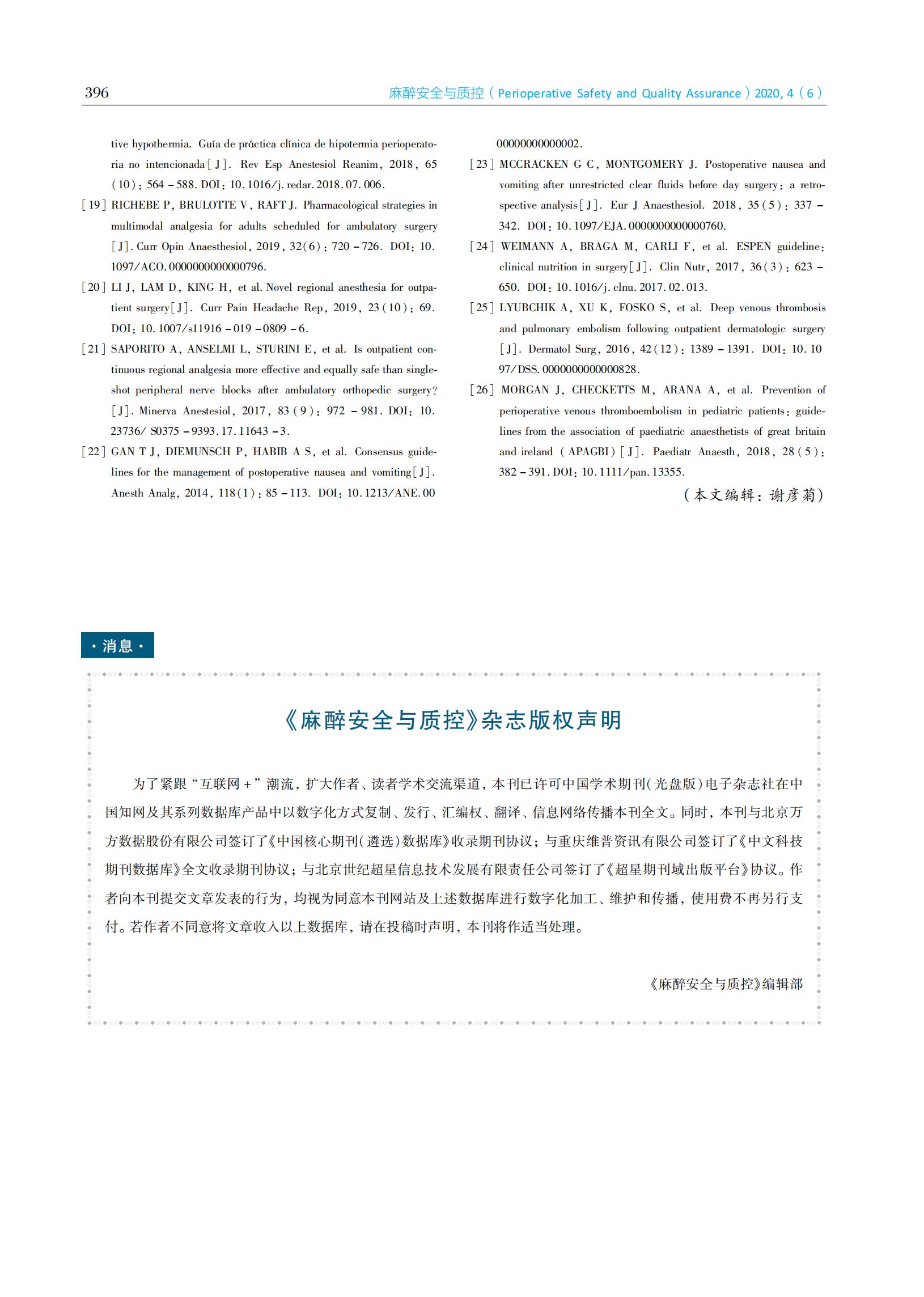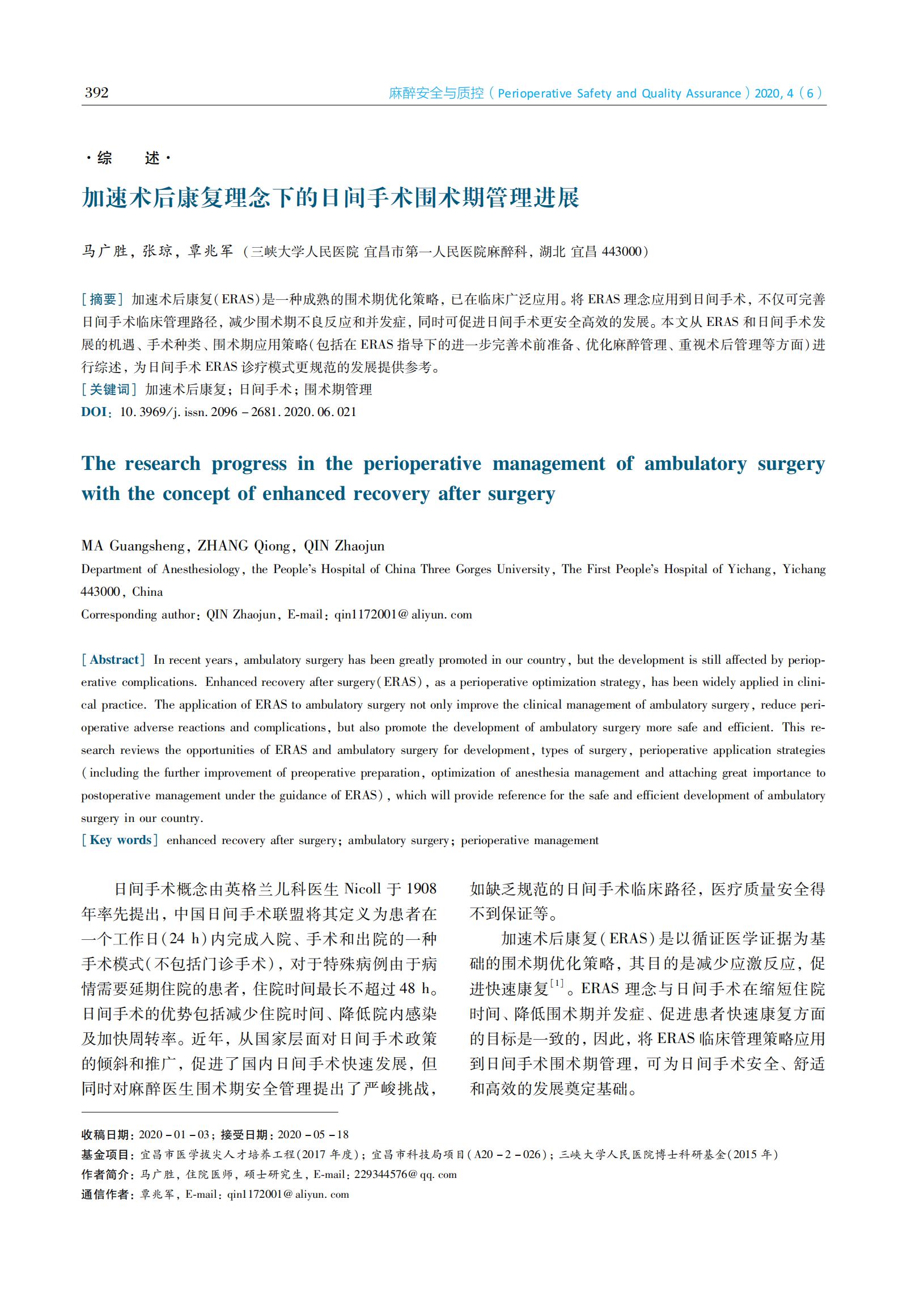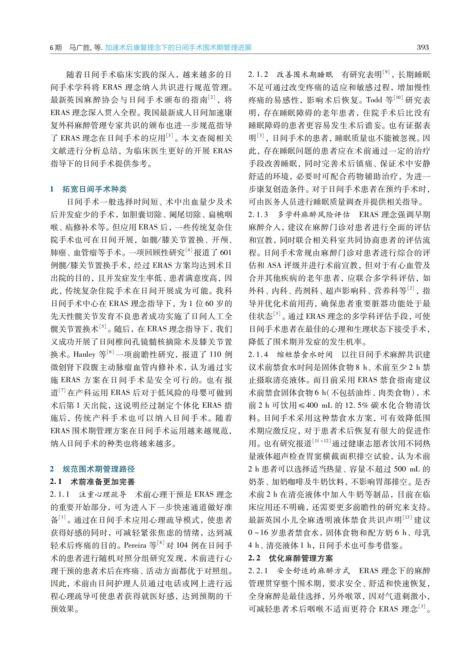 加速术后康复理念下的日间手术围术期管理进展