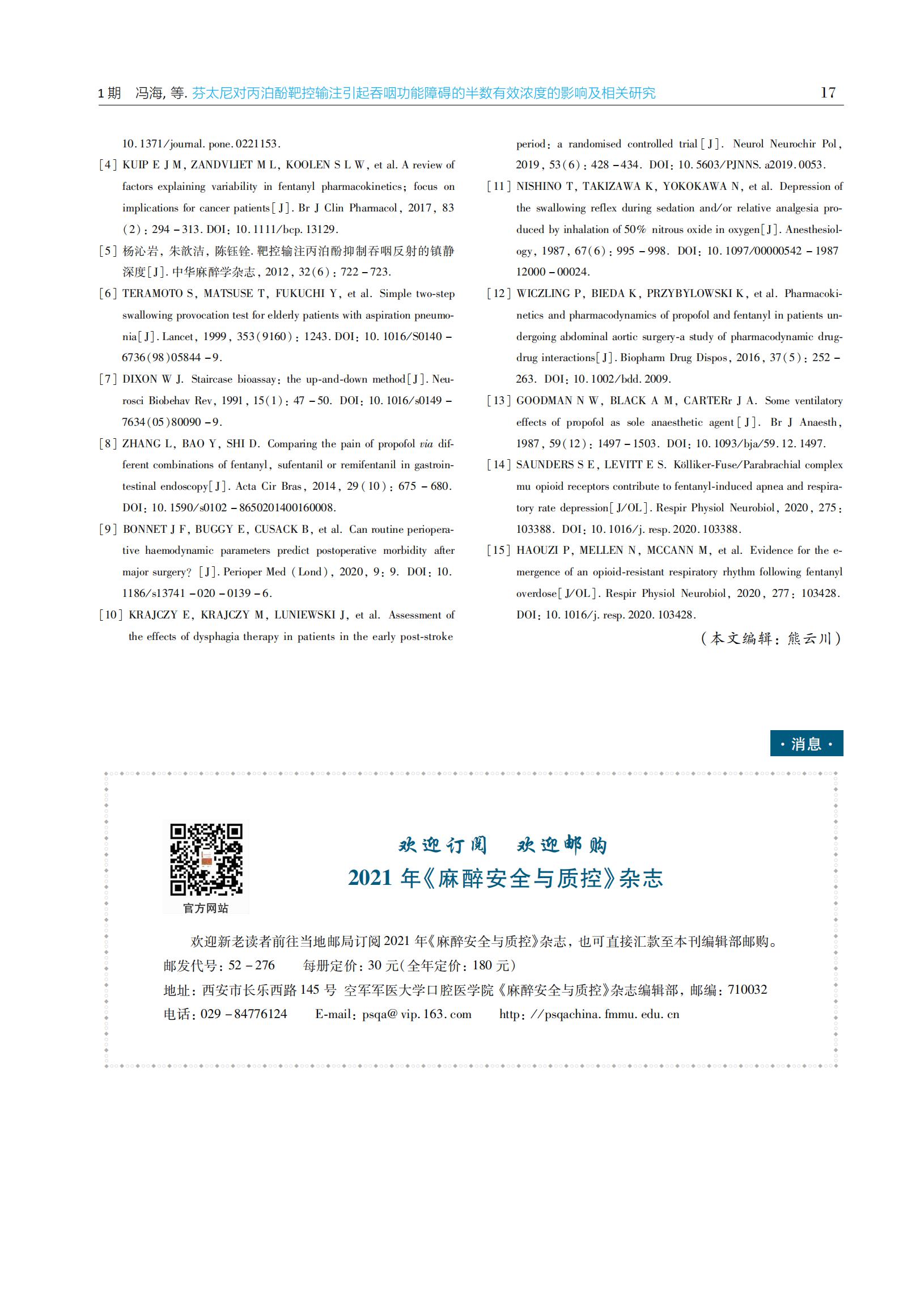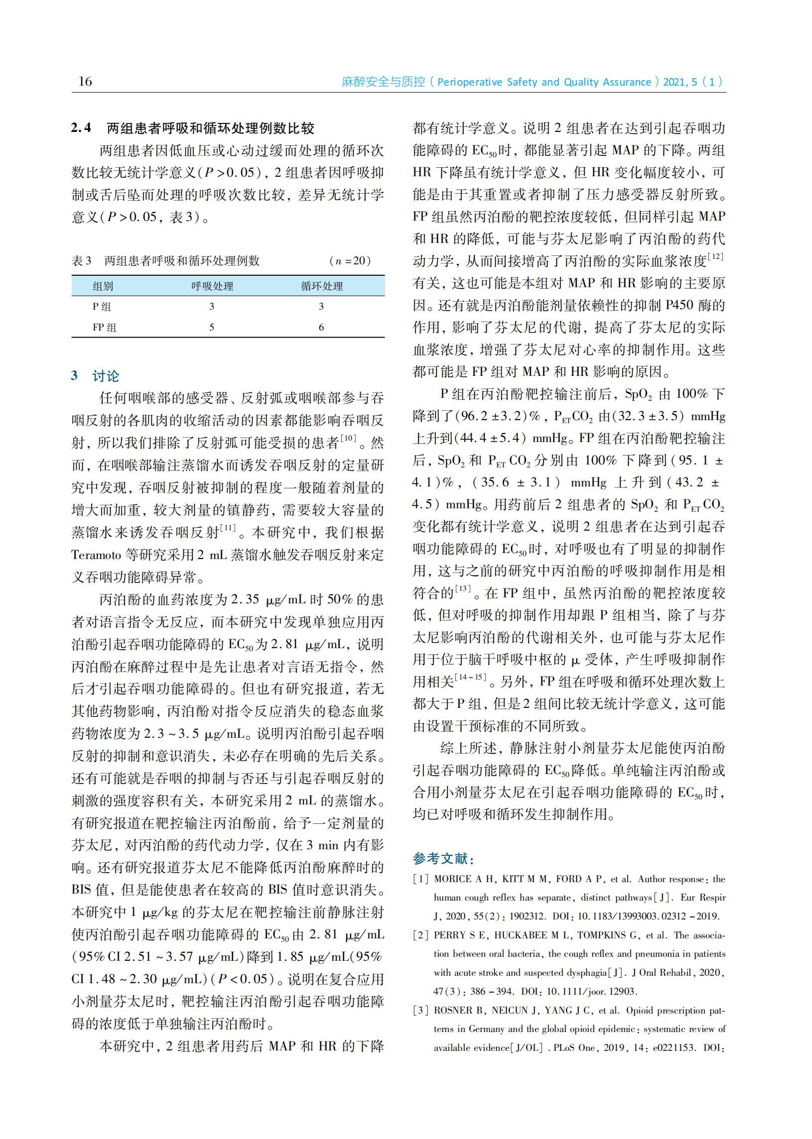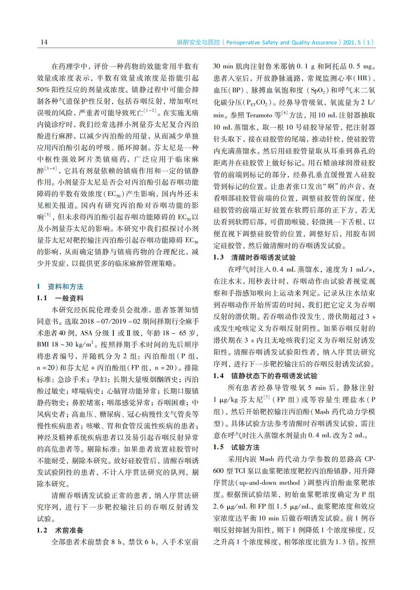 芬太尼对丙泊酚靶控输注引起吞咽功能障碍的半数有效浓度的影响及相关研究