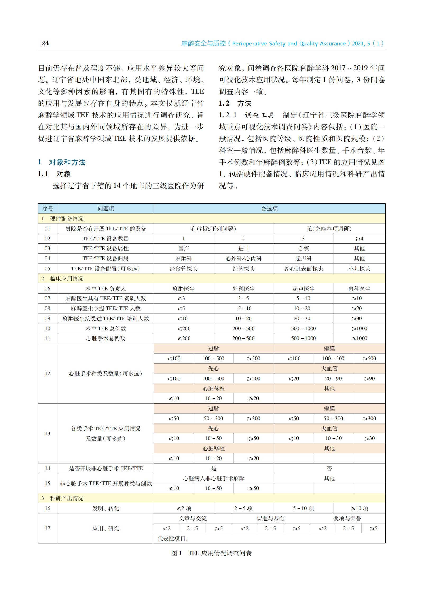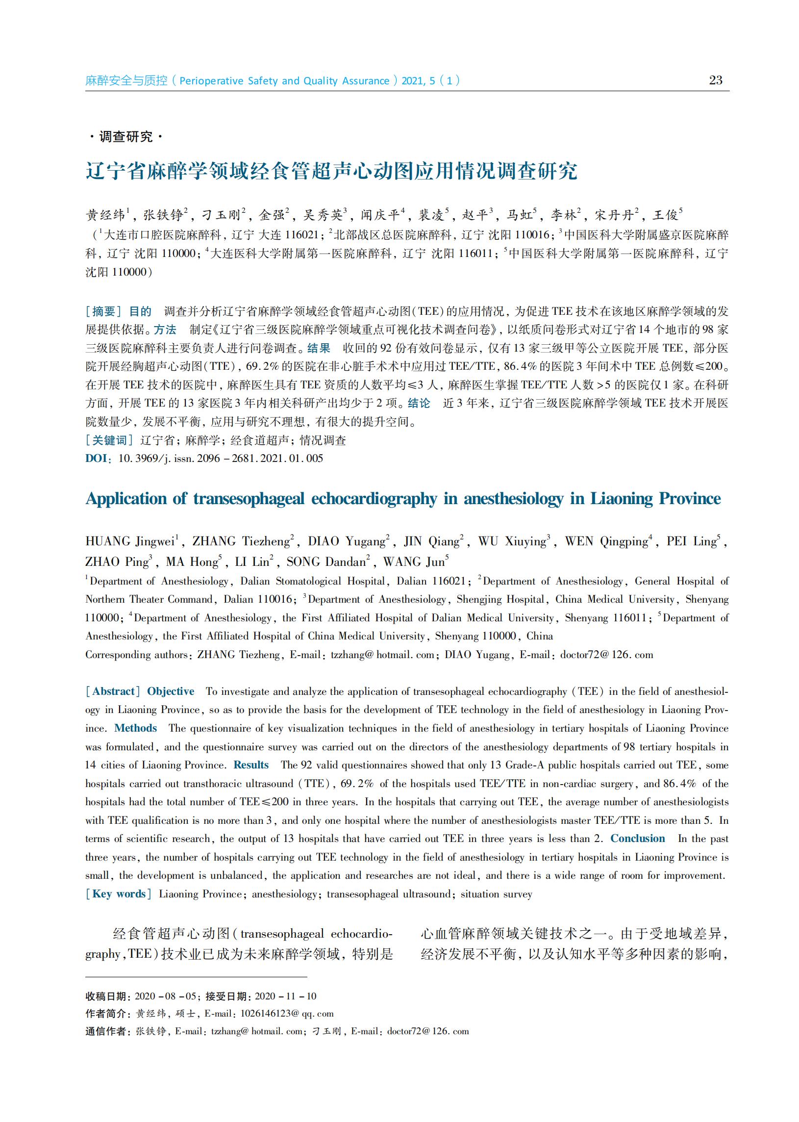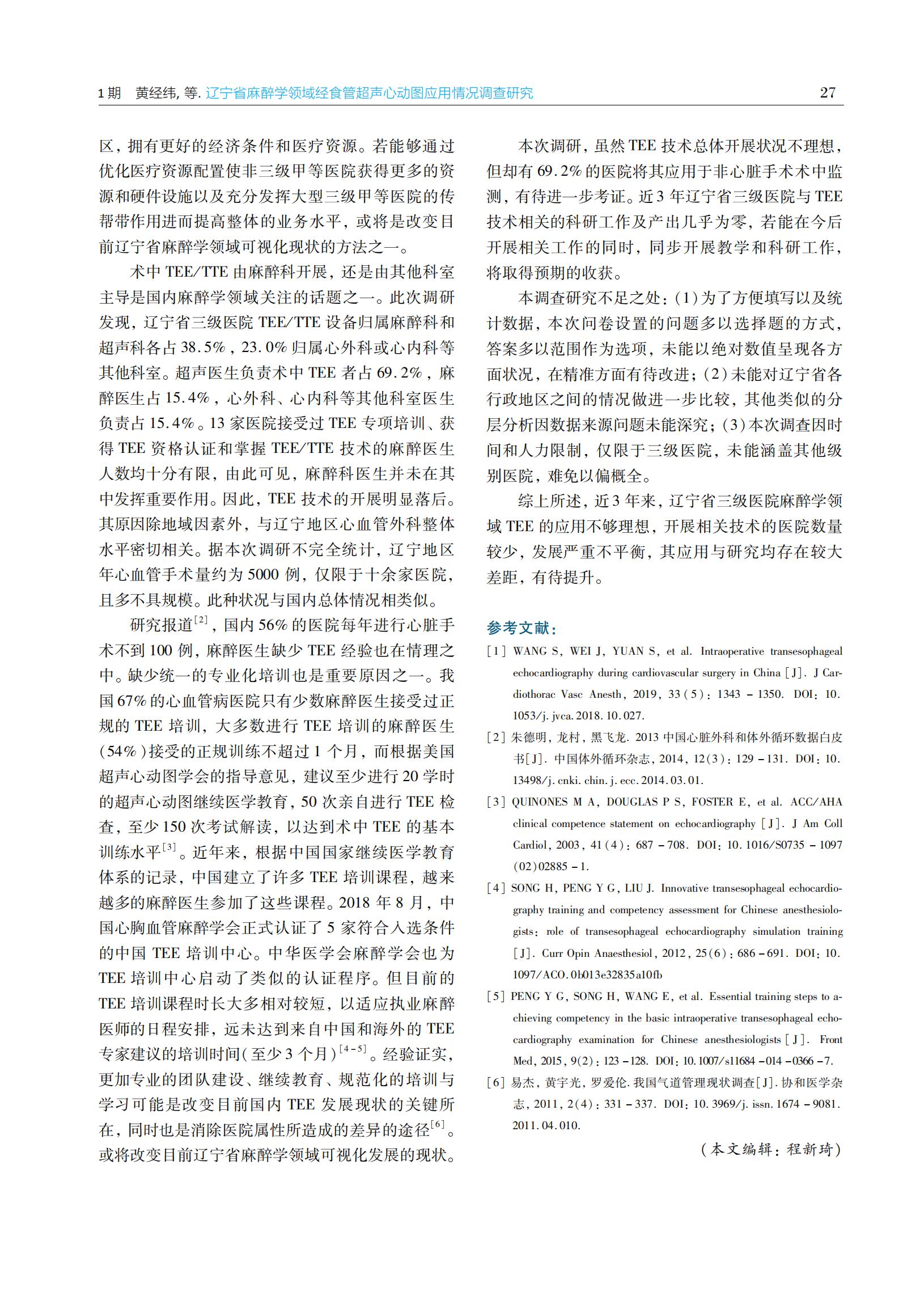 辽宁省麻醉学领域经食管超声心动图应用情况调查研究
