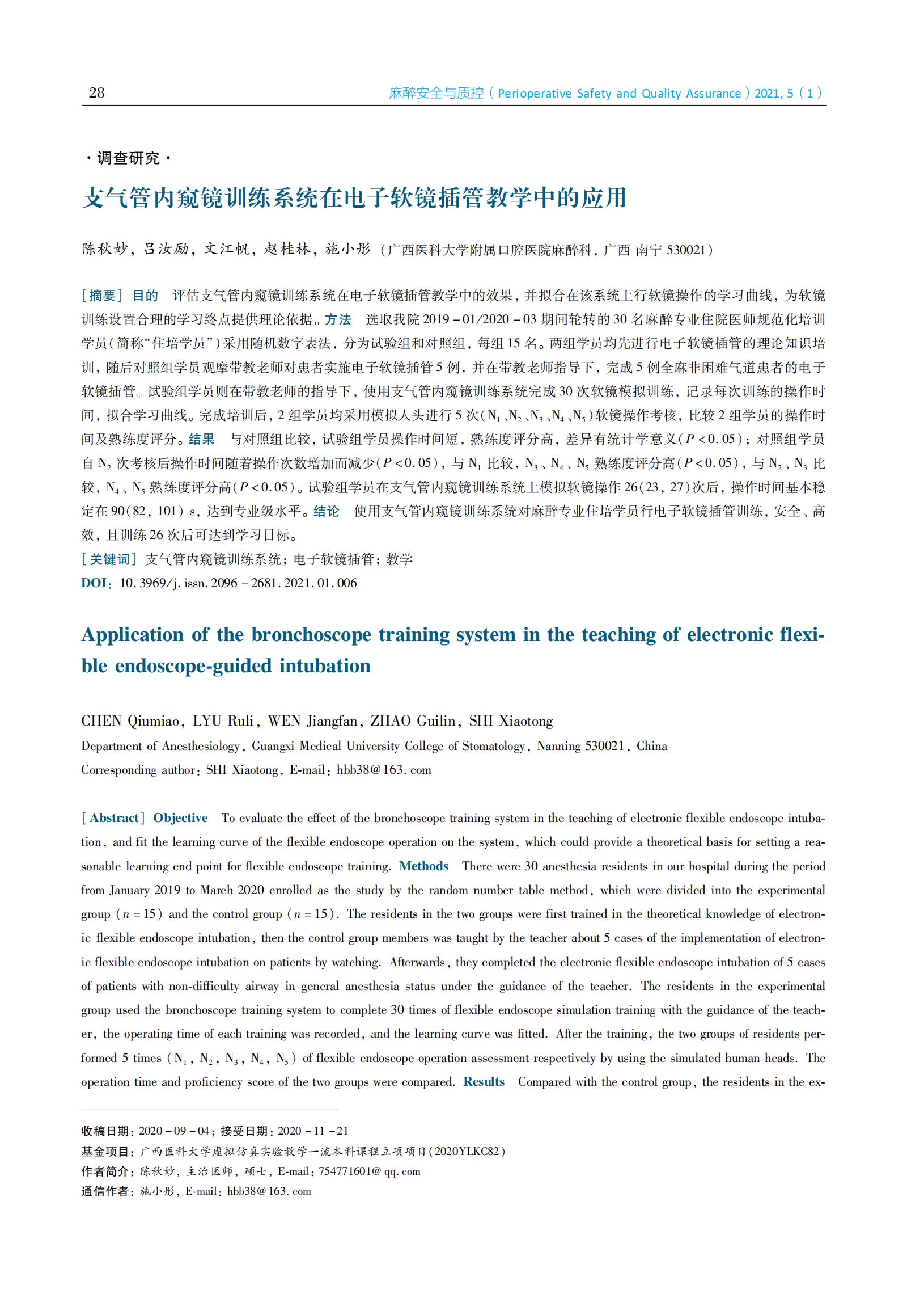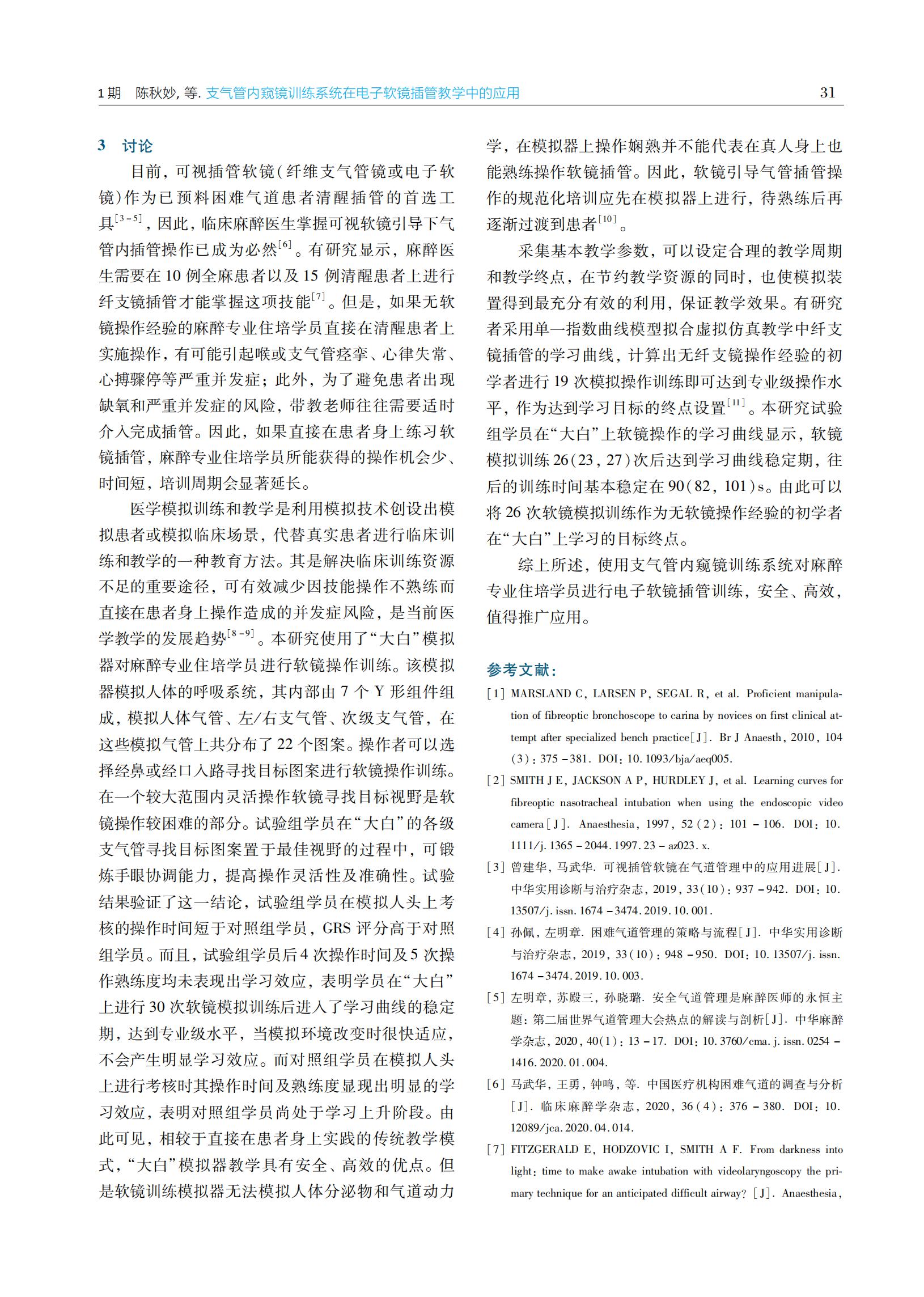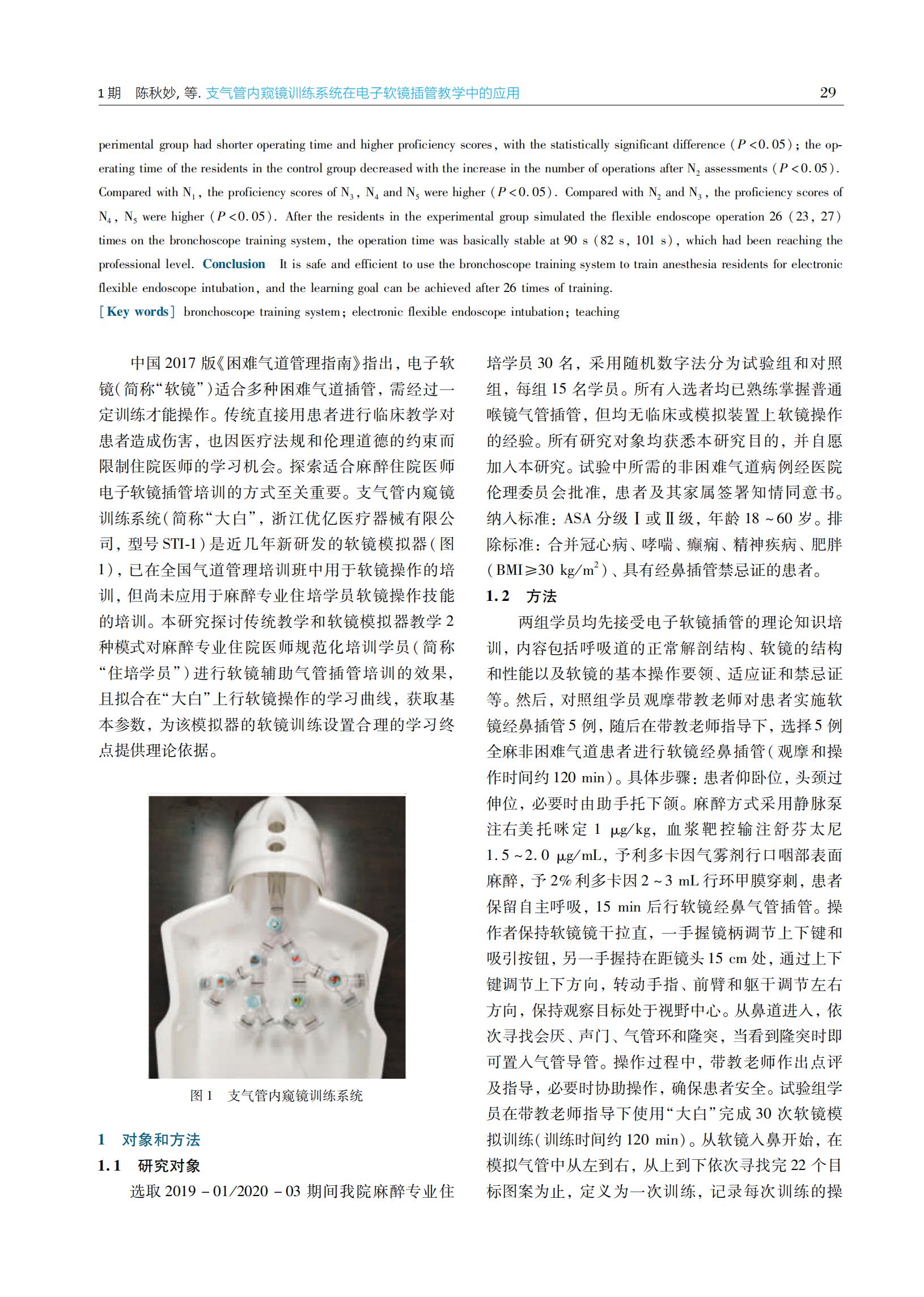支气管内窥镜训练系统在电子软镜插管教学中的应用